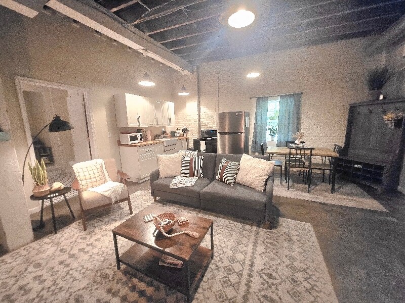 Property Id: 2280017 Corporate Housing-Downtown Serenity Loft is in the prime spot downtown right off the bluffwalk. Offering a stylish, open-concept studio loft that includes a comfortable living area with a queen size bed, sleeper sofa, open kitchen seating for guest, 2 flat screen TVs with streaming, full kitchen supplied with drip coffee and a keurig maker and equipped with all your cooking needs. Huge bathroom a stand shower. Wifi, Ultilities, Electric Included Fully Furnished and Stocked Free Washer & Dryer offered in the building.(located around the corner from your loft) Detergents are provided. **Did I mention this loft is right off the Bluffwalk with your very own patio setting to enjoy** You're going to love this Loft!!! PAID PARKING: This unit offers ONE Vehicle parking pass for the parking garage across the street. You may also park right off the main street. Pets are welcome for a small fee. Mid term stay/ monthly $150 Cleaning fee Conveniently located! Prime Spot!