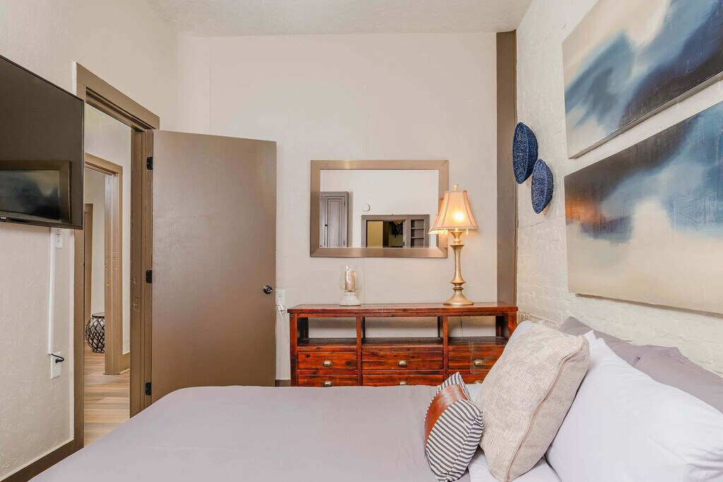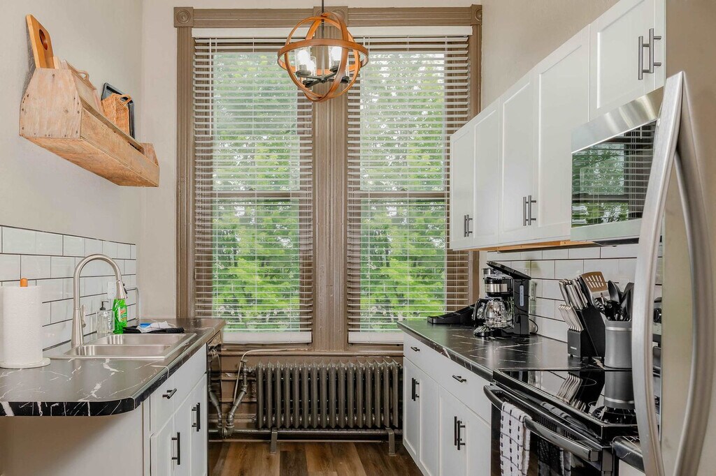 Feel at home in this one-of-a-kind residence situated in the heart of downtown Oshkosh, a city bursting with culture, history, and activities for all ages. This apartment has 3 bedrooms and 1.5 baths. This uniquely decorated apartment features high-end historic relics and artifacts from across the state, restored brick walls, exposed rafters, and giant windows. Entertainment is provided by a ping pong table and smart TVs. Downtown Oshkosh is fully walkable and offers great restaurants, awesome waterfront access, an amazing convention center, the iconic Grand Theater, and one of the best Saturday farmers markets the state of Wisconsin has to offer. It is also home to the world's largest aviation event, EAA Air Venture, which is just a short 10-minute ride away. Uber and Lyft are abundant and ready to take you wherever you want to go. The downtown area is very safe, and you can easily walk anywhere at any time of day or night. Absolutely no smoking of any kind is allowed in the apartment. Violation of this rule will result in a $250 fine. [SI]