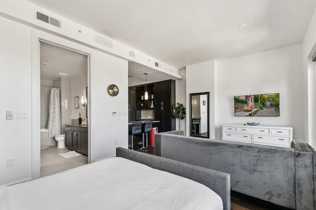 This cozy studio apartment is perfect for a solo traveler, business traveler, or small group exploring Dallas for extended periods or relocating. Situated in the heart of Uptown, it offers easy access to all Dallas attractions, with a 5-minute walk to McKinney Street, an 8-minute walk to Uptown West Village, a 5-minute drive to Downtown Dallas, and a 7-minute drive to the American Airlines Arena. The apartment and amenities are designed for an ultimate experience, featuring comfortable beds, a fully equipped kitchen, and more. The studio features a gourmet kitchen, a living room, and laundry facilities, including an ironing board and clothes iron. The kitchen is fully equipped with quality utensils, plates, a coffee maker, and many more useful items. The studio also offers spacious closet space, and the bathroom is equipped with a hairdryer, high-quality white towels, body wash, and shampoo. Early check-in and late check-out are available upon request. There is a $75 per day charge for cats or dogs unless waived by the owner in writing. Parking is available, but you will be charged a $500 replacement fee if the parking pass is not returned. Not only will you be able to enjoy upscale amenities, but you'll also have every opportunity to explore multiple restaurants, shopping, bars, and more, as you're surrounded by the best Dallas has to offer. The neighborhood is beautifully walkable, with access to the great outdoors and cultural attractions like the Katy Trail, Klyde Warren Park, and the Dallas Museum of Arts. No smoking or use of drugs is allowed inside the apartment, with a $500 penalty for smoking inside the unit. Quiet hours are from 10:00 pm to 7:00 am, and no parties or events are allowed. Be respectful to neighbors and keep noise to a minimum. A $250 charge applies for unauthorized parties. The guest is responsible for taking all their belongings and organizing used towels and bed sheets in one place. Guests have full access to the kitchen and appliances and are responsible for cleaning up after use. Damaged appliances must be repaired at the guest's expense. Linen and towels are high-quality, and guests are asked to avoid using them for makeup or anything that may cause permanent stains, as damaged items will be charged back to the guest. Your personalized guest app provides door access codes for self check-in and allows you to request grocery delivery prior to arrival, airport drop-off service, mid-stay cleans, free laundry pick-up and drop-off, and access to the house manual. Wi-Fi is available for your convenience. [SI]