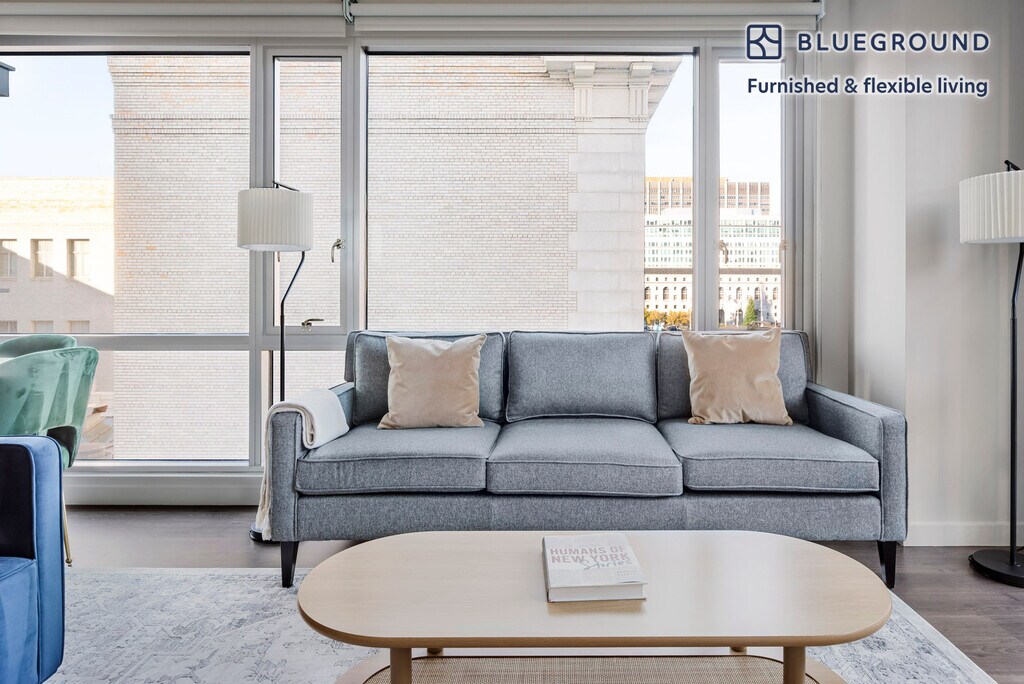 Discover the best of San Francisco, with this two bedroom apartment in Civic Center. It’ll be easy to simply show up and start living in this furnished apartment with its fully equipped kitchen, living room, and our dedicated, on-the-ground support. (ID #SFO2102) The advertised rate of $6,080/month is the lowest available price, based on a 2 month(s) and 27 day(s) stay with a move-in date of January 25, 2026. If you’re looking for a 1-year stay, the rate is $6,420/month. Rates vary depending on the duration of stay, season, and other parameters. For exact pricing and additional pricing components, please visit our website and enter your desired move-in and move-out dates. The rate is applicable when billed upfront; it can be higher if billed in multiple payments. Brokers are welcome to reach out. Were you looking for an unfurnished lease? Try Blueground instead and upgrade from unfurnished to furnished living: - Furnished at rates comparable to unfurnished - No setup or furniture costs - save thousands - Move-in ready - save time, just bring your suitcase Designed with you in mind As with any Blueground apartment, you’ll find a thoughtfully designed space complete with beautiful furniture and a fully equipped kitchen in this two bedroom property. And, thanks to our superior quality mattresses, luxury linens, and towels, you can relax knowing you’ll always feel comfortably at home. When you’re ready for some fun, you can take in the San Francisco vibes or bring the entertainment to you with the premium wireless speaker or smart TV. This apartment also offers in-apartment laundry. Sleeping arrangements King Bed, 70.8in/180cm Queen Bed, 63in/160cm Amenities Building amenities unique to this two bedroom apartment include an on-site: - Dryer - Elevator - Washing machine - Parking - Pets allowed Arrival and ongoing support The entire apartment is yours to enjoy! Throughout your stay, you’ll have access to our Client Experience team through the Blueground App. You can schedule additional cleanings, submit maintenance requests, and view our neighborhood recommendations with just a few taps. We’ll share all details upon confirmation of your stay. Ideally Located This furnished apartment is in the Civic Center. The area contains many of the city’s largest government and cultural institutions. It is home to San Francisco’s City Hall and is surrounded by a number of classical buildings. The Supreme Court of California, the Asian Art Museum and the library are all located here. It has two large plazas (Civic Center Plaza and United Nations Plaza) and is the main site for any culturally significant activity. Located in the heart of the city, the SFO Airport is just 25 minutes by car or 45 minutes by BART. Other things to note Building amenities may have an extra cost. This Blueground apartment has flexible lease options, allowing you to book it for one month, a year, or more. Pets are welcome, though weight limits and breed restrictions apply and may incur fees. Parking is offered based on availability and is subject to a fee. We take great pride in ensuring every photo displayed is shot in our own units with our actual furnishings. That said, we regularly refresh our decor and furniture arrangement, which may differ from what’s pictured. [SI]