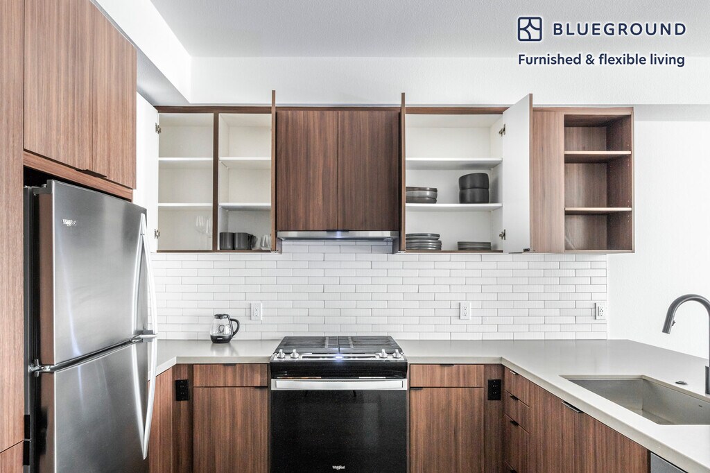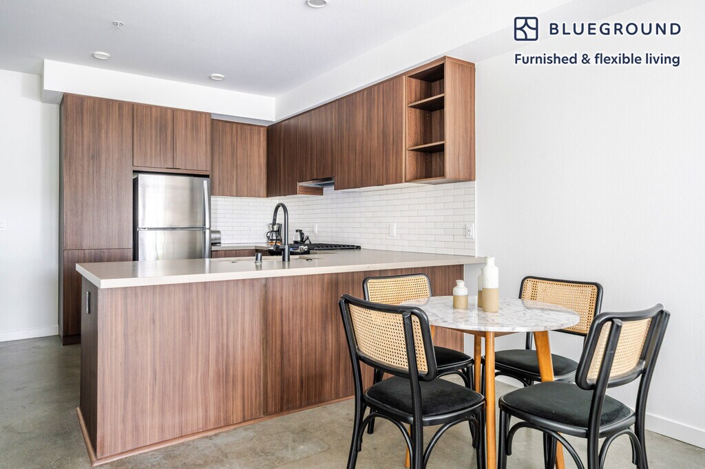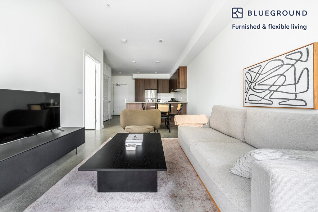 Feel at home wherever you choose to live with Blueground. You’ll love this sophisticated Mission Valley West furnished one bedroom apartment with its modern decor, fully equipped kitchen, and lovely living room. Ideally located, you’re close to all the best that San Diego has to offer! (ID #SAN58) The advertised rate of $3,150/month is the lowest available price, based on a 12 month(s) stay with a move-in date of July 1, 2026. Rates vary depending on the duration of stay, season, and other parameters. For exact pricing and additional pricing components, please visit our website and enter your desired move-in and move-out dates. The rate is applicable when billed upfront; it can be higher if billed in multiple payments. Brokers are welcome to reach out. Were you looking for an unfurnished lease? Try Blueground instead and upgrade from unfurnished to furnished living: - Furnished at rates comparable to unfurnished - No setup or furniture costs - save thousands - Move-in ready - save time, just bring your suitcase Designed with you in mind Thoughtfully designed with bespoke finishes, modern furnishings, and a fully equipped kitchen, you’ll enjoy that “I’m home” feeling with this Blueground apartment. Whether you’re lounging in your sophisticated living room streaming the latest and greatest entertainment on the smart TV or premium wireless speaker, or getting some well-earned rest on the superior quality mattress with luxury linens, you’ll fall in love with everything this Mission Valley West apartment has to offer. This apartment also offers in-apartment laundry. Sleeping arrangements King Bed, 70.8in/180cm Amenities Building amenities unique to this one bedroom apartment include an on-site: - BBQ Area - Dryer - Elevator - Swimming pool - Washing machine - Parking - Pets allowed Arrival and ongoing support The entire apartment is yours to enjoy! Throughout your stay, you’ll have access to our Client Experience team through the Blueground App. You can schedule additional cleanings, submit maintenance requests, and view our neighborhood recommendations with just a few taps. We’ll share all details upon confirmation of your stay. Other things to note Building amenities may have an extra cost. This Blueground apartment has flexible lease options, allowing you to book it for one month, a year, or more. Pets are welcome, though weight limits and breed restrictions apply and may incur fees. Parking is offered based on availability and is subject to a fee. We take great pride in ensuring every photo displayed is shot in our own units with our actual furnishings. That said, we regularly refresh our decor and furniture arrangement, which may differ from what’s pictured. Also note - On-street parking near the building is not allowed [SI]