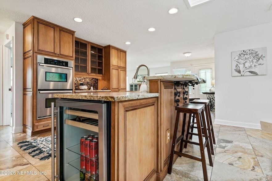 Gorgeous corner lot in Oakbridge at Sawgrass Players Club, a beautiful gated community in the heart of Ponte Vedra Beach. Offering a fully renovated, turnkey three-bedroom, two-bathroom home. Enjoy stunning landscaping, a spacious fenced backyard with a brick-paved fire pit area, and an oversized screened lanai with a small Key West style Jetted Dipping Pool. The granite kitchen island features extra bar seating and a built-in beverage cooler. A split floor plan, French doors, and large windows create a bright, airy atmosphere. The master suite boasts a custom closet and a walk-in shower for ultimate relaxation. Expansive living and dining areas flow seamlessly in an open-concept design, perfect for entertaining. The house may be a quiet oasis, but is also walking distance from many community ammenities, including golf, restaurant, pickle ball, tennis and more! Lawn and pool maintenance included. Application fee: $50 per person (18+)