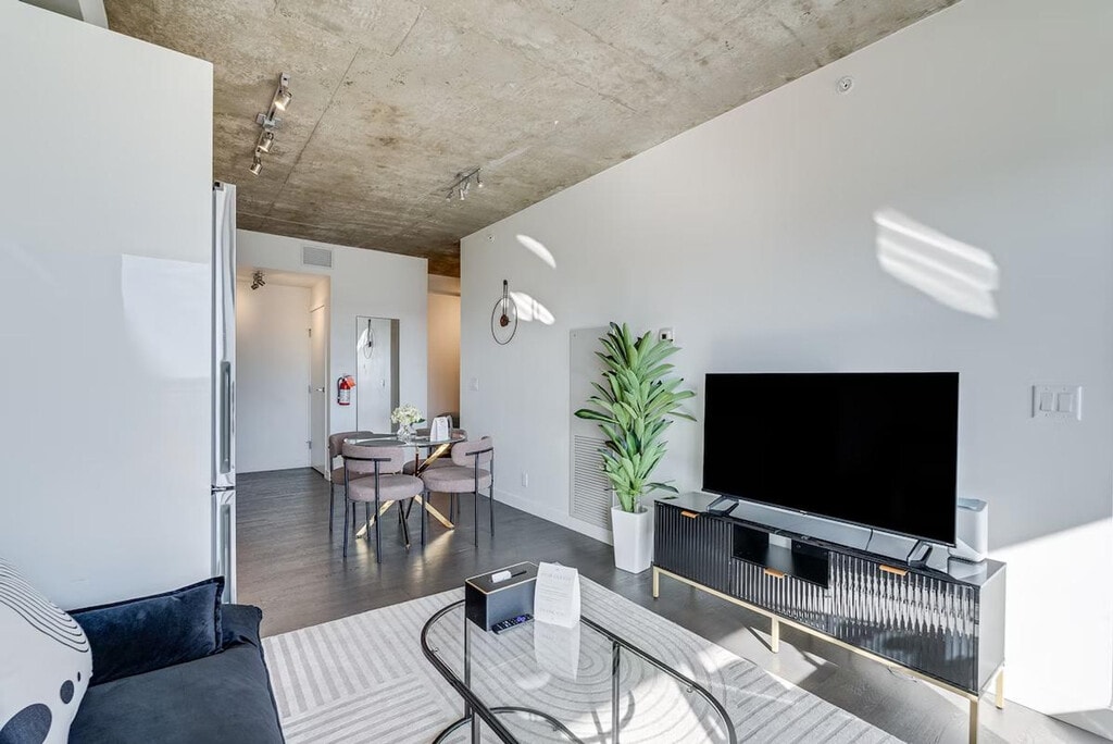 The advertised rate of C$7,638/month is the lowest available price, based on a 30 day(s) stay with a move-in date of October 10, 2026. Rates vary depending on the duration of stay, season, and other parameters. For exact pricing and additional pricing components, please visit our website and enter your desired move-in and move-out dates. The rate is applicable when billed upfront; it can be higher if billed in multiple payments. Feel at home in this modern, bright, and centrally located 1-bedroom plus den apartment in downtown Calgary, perfect for up to 5 guests. This comfortable suite has everything you need, including a fully functional kitchen with tea, coffee, kettle, coffeemaker, and toaster. Enjoy entertainment with the smart TV, Netflix, and Wi-Fi. A washer and dryer with supplies are available for your convenience. The bathroom is equipped with towels, shampoo, conditioner, body wash, a hair dryer, and other toiletries. Amenities are open every day from 5 am to midnight, including the gym (5:00 am - 11:00 pm) and the outdoor seasonal pool (June 1 - September 1, 9:00 am - 10:00 pm). Paid outdoor parking is available right next to the building for $15 per night, with no reservation needed. You'll be steps away from The Beltliner for brunch, Last Best Brewing & Distillery for craft beer, and Pigeonhole for upscale dining. Monogram Coffee and Analog Coffee are both within walking distance for your coffee fix. For casual evenings, National on 10th is perfect, while Cilantro offers a refined dining option nearby. With Prince's Island Park and the Bow River pathways close by, outdoor recreation is easily accessible. Public transit is a breeze with a bus stop just two blocks away and the LRT only four blocks from your door. Top Calgary attractions nearby include Calgary Tower (8-minute walk), Stampede Park / Saddledome (12-minute walk), Stephen Avenue Walk (10-minute walk), and 17th Avenue (restaurants & bars) (7-minute walk). The minimum age for booking is 25 years. Check-in is after 4 pm, and check-out is before 12 pm. Late check-out is possible upon advance notice and is subject to review and accommodation if possible. Smoking is strictly prohibited anywhere in the building, and pets are not allowed. If the smoke alarm is triggered and the smell of any type of smoking is discovered, the partner has a right to cancel your reservation immediately and charge you a $150 service call and $200 cleaning fees. As part of the anti-fraud verification process, each guest is kindly asked to send a selfie holding their ID. All guests staying in the apartment must provide their ID prior to check-in. The unit is equipped with video surveillance to the front door only and a noise detector. The front door is being checked for the number of guests as well as the noise level to avoid any type of parties. The partner has a right to cancel your reservation immediately without any refund if the number of guests exceeds the number specified in the reservation. If you plan to invite any additional guests, please inform us in advance. [SI]