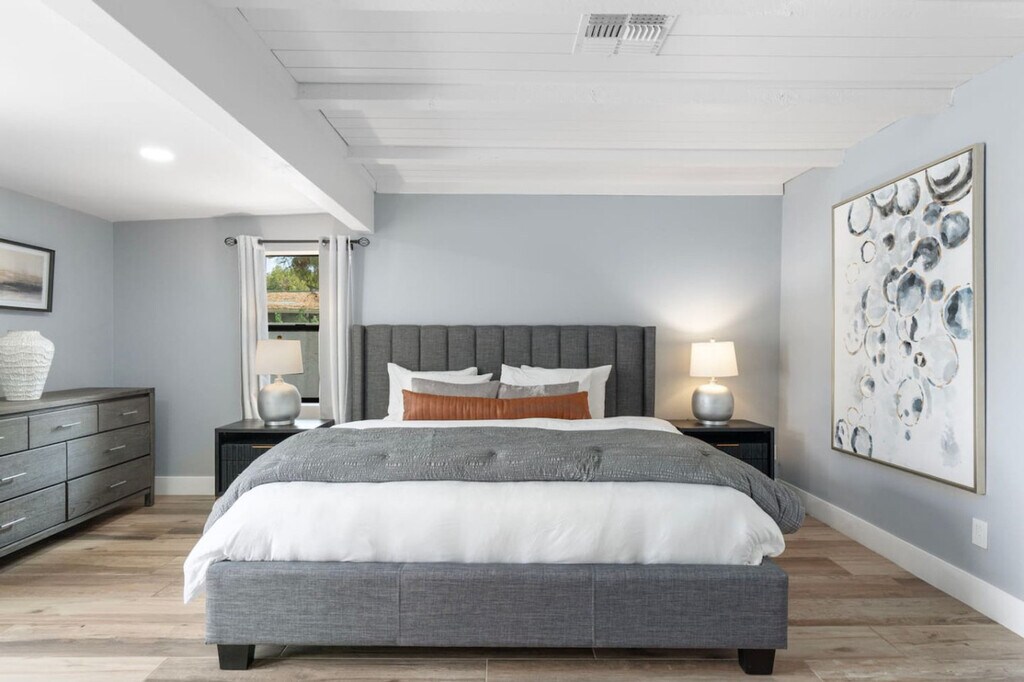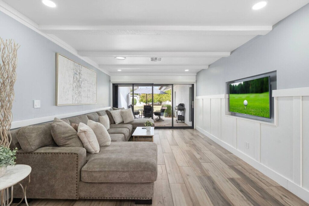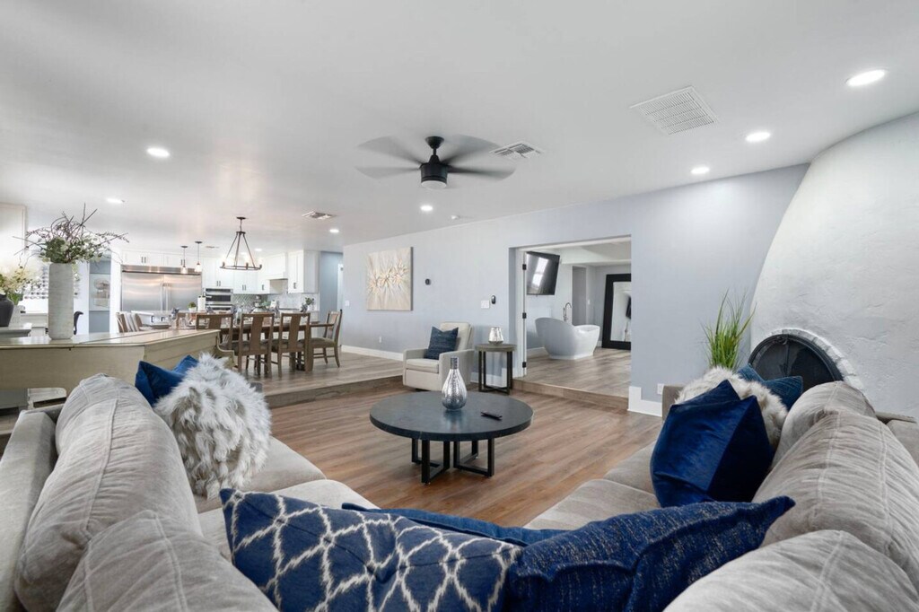 Experience modern elegance in this newly renovated desert retreat, featuring designer finishes and resort-style amenities. The chef’s kitchen includes professional appliances, quartz counters, and a large island, perfect for cooking or entertaining. The luxurious primary suite has a king-size bed, spa-like bath, and direct pool access. Outside, enjoy a sparkling pool, spa, and chic lounge areas made for sunny days and starry nights. Just minutes from top dining and shopping, this is the ultimate desert escape. [SI]