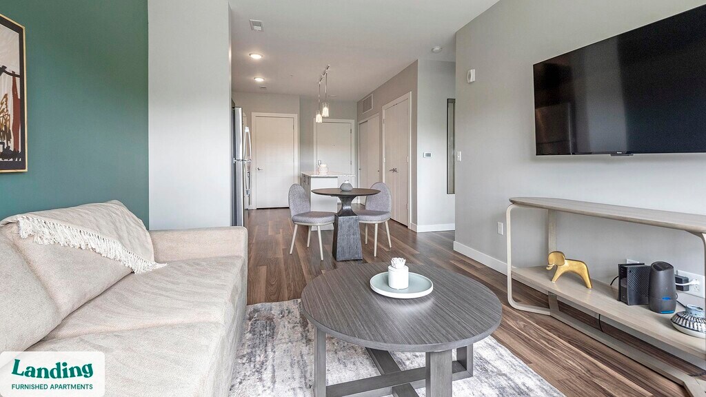 Landing offers flexible lease terms from weeks to months. Please always visit our website or contact us for the latest pricing & availability. Stay longer, save more: 6-Month Minimum base rent: starts at $2075/mo 12-Month Minimum base rent: starts at $1827/mo Landing offers flexible leases across a network of over 35,000 fully-furnished apartments throughout 375+ cities so you can rent on your terms, practically anywhere, and avoid the hassle of paying deposits or application fees. Visit to learn about all the benefits of a Landing membership, see our competitive up-to-date pricing, explore available apartments, take virtual tours, and make reservations online without jumping through traditional rental hoops. Landing's apartments at Whispering Heights are designed for comfortable, easy living, with the ability to stay as long as you like. Experience living with Landing Every apartment is outfitted with all the modern essentials including: custom-designed furnishings, a fully-equipped kitchen with deluxe stainless steel appliances, a gourmet coffee maker, premium linens, Smart TVs, and incredibly fast, reliable internet for working from home. When you live with Landing, you'll enjoy a hassle-free experience with the added benefit of 24/7 access to our dedicated member experience team. Some of the nitty-gritty: a background check and proof of income are required; we're completely smoke-free; bundled utility packages and pricing vary based on length of stay; pet-friendly options available; listed price reflects a 12-month minimum stay.