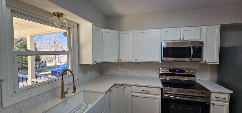 Property Id: 2271993 Fully renovated and move-in ready, this rental offers a beautifully upgraded interior throughout. The kitchen features quartz countertops, soft-close cabinets, a farmhouse sink, and new stainless steel appliances. Both bathrooms are updated with modern tile, including a walk-in shower with glass door and a tub/shower combo. The primary suite includes a granite double vanity. Additional improvements include a new deck, new garage door, and updated lighting. Conveniently located near shopping, top-rated schools, and major highways, with private side road driveway for easy access.