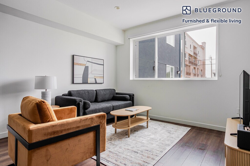 Feel at home wherever you choose to live with Blueground. You’ll love this stylish Harvard Heights furnished one bedroom apartment with its modern decor, fully equipped kitchen, and cheery living room. Ideally located, you’re close to all the best that Los Angeles has to offer! (ID #LAX1418) The advertised rate of $2,370/month is the lowest available price, based on a 12 month(s) stay with a move-in date of May 12, 2026. Rates vary depending on the duration of stay, season, and other parameters. For exact pricing and additional pricing components, please visit our website and enter your desired move-in and move-out dates. The rate is applicable when billed upfront; it can be higher if billed in multiple payments. Brokers are welcome to reach out. Were you looking for an unfurnished lease? Try Blueground instead and upgrade from unfurnished to furnished living: - Furnished at rates comparable to unfurnished - No setup or furniture costs - save thousands - Move-in ready - save time, just bring your suitcase Designed with you in mind As with any Blueground apartment, you’ll find a thoughtfully designed space complete with beautiful furniture and a fully equipped kitchen in this one bedroom property. And, thanks to our superior quality mattresses, luxury linens, and towels, you can relax knowing you’ll always feel comfortably at home. When you’re ready for some fun, you can take in the Los Angeles vibes or bring the entertainment to you with the premium wireless speaker or smart TV. This apartment also offers in-apartment laundry. Sleeping arrangements Queen Bed, 63in/160cm Amenities Building amenities unique to this one bedroom apartment include an on-site: - Dryer - Elevator - Swimming pool - Washing machine - Lounge - Parking - Pets allowed Arrival and ongoing support The entire apartment is yours to enjoy! Throughout your stay, you’ll have access to our Client Experience team through the Blueground App. You can schedule additional cleanings, submit maintenance requests, and view our neighborhood recommendations with just a few taps. We’ll share all details upon confirmation of your stay. Other things to note Building amenities may have an extra cost. This Blueground apartment has flexible lease options, allowing you to book it for one month, a year, or more. Pets are welcome, though weight limits and breed restrictions apply and may incur fees. Parking is offered based on availability and is subject to a fee. We take great pride in ensuring every photo displayed is shot in our own units with our actual furnishings. That said, we regularly refresh our decor and furniture arrangement, which may differ from what’s pictured. [SI]