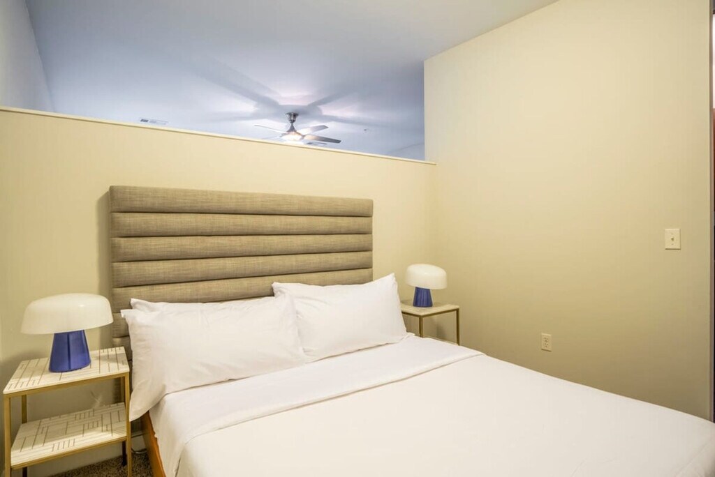 Feel at home in this locally inspired condo in Nashville's famous Music Row and the heart of Midtown. This apartment is perfect for leisure, business, and family and is steps away from the best shopping, dining, and live music in Nashville. Great amenities await you in this apartment! It features a modern design infused with authentic Nashville-inspired decor, a fully equipped kitchen, 100mbps+ internet, modern decor, a Smart-TV with streaming apps installed, a garden area to lounge and relax with friends, complimentary coffee, and a community garden with cabana, 2 outdoor TVs, a gas grill, and a fire pit. One complimentary parking spot is included. Additional paid services are available to make your visit even more comfortable, like mid-stay cleanings, early check-in/late check-out (when available). There are so many places within walking distance of the building in Music Row! Old Glory and Bella Napoli are some favorites. A car is not needed, as the apartment is within walking distance of Midtown where you'll find local bars! Lyft/Uber to Broadway (Downtown Nashville) and the famous Honky Tonks are only $5-7 one-way! Smoking of any kind is not permitted within or outside of the apartment, including balconies, patios, or common and/or parking areas. Any sign of smoking is a violation of the stay agreement, which may result in immediate termination and recovery fees beginning at $500. Quiet hours are from 9pm-8am each day. Check-in is at 4 PM and check-out is at 11 AM (a $75/hr late fee applies). There is a $200 penalty for removing smoke detectors and a $200 penalty for lost key fobs. No weapons or drugs are allowed; police will be called for violating this rule. No outside guests are allowed without permission. There is a maximum of 2 pets allowed (40lbs combined) and no Pit Bulls or Bull Mastiffs [similar breed] are permitted. An additional $100-300 pet fee based on stay length is collected separately.
