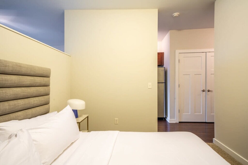 Feel at home in this locally inspired studio apartment in Nashville's famous Music Row and the heart of Midtown. This wheelchair accessible apartment is steps away from the best shopping, dining, and live music in Nashville. This apartment is suitable for a family, group of friends, or business travelers and has all of the amenities necessary to enjoy your stay and all the comforts of home. Great amenities await you, including a fully equipped kitchen, 100mbps+ internet, modern decor, and a Smart-TV with streaming apps installed. There is also a garden area to lounge and relax with friends and complimentary coffee. One complimentary parking spot is included. There is also a community garden with a cabana, 2 outdoor TVs, a gas grill, and a fire pit. Pets are welcome with an additional $100-300 pet fee based on stay length. There are so many places within walking distance of the building in Music Row. Old Glory and Bella Napoli are some favorites. Hillsboro and Edge Hill neighborhoods offer shopping, restaurants and tons of other interesting information about where you will be staying. A car is not needed, as the apartment is walking distance to Midtown where you'll find local bars. Lyft/Uber to Broadway (Downtown Nashville) and the famous Honky Tonks are only $5-7 one-way. For the bold and adventurous, dockless Lime scooters are available. Smoking, of any kind, is not permitted within or outside of the apartment, including balconies, patios, or common and/or parking areas. Any sign of smoking is a violation of the stay agreement, which may result in immediate termination and recovery fees beginning at $500. Check-in is at 4 PM and check-out is at 11 AM, with a $75/hr late fee. There is a $200 penalty for removing smoke detectors and a $200 penalty for lost key fobs. No outside guests are allowed without permission. Guests must agree to not disturb neighbors at all times during the stay and must observe quiet hours from 9pm-8am each day. The apartment is proactively monitored with decibel sensors for compliance with this noise policy. Max 2 pets (40lbs combined) are allowed, excluding Pit Bulls and Bull Mastiffs [similar breed].