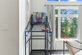 Feel at home in this spacious, family-friendly cottage in Lake of Bays, designed for comfort and relaxation. Built in 2024, this open-concept cottage features soaring vaulted ceilings and floor-to-ceiling windows, flooding the space with natural light and views of the pines. The backyard is your go-to space for reconnecting with nature and spending quality time with loved ones. Unwind in the 4-seater hot tub, perfect for relaxing after a day of adventure. The stylish boutique-style décor creates a cozy, modern vibe, with a leather sofa with plush pillows and throws, and an oversized basket chair. Entertainment options include a 60” 4K Ultra HD Smart TV for movie nights, a game room with a foosball table, Connect 4, a pullout couch, and a collection of board games. The fully equipped kitchen comes with all essential cooking appliances and a dining table for family meals. Enjoy the screened Muskoka Room with a cozy fire table, a spacious 6-seater sectional couch, magical fairy lights, and a 3-burner BBQ. Classic table tennis is available for a dose of fun. Surrounded by peaceful woods and scenic trails, this is the ideal getaway for families, friends, or couples looking to unwind and enjoy Muskoka. Winter activities include skiing, snowboarding, snowshoeing, and snowmobiling, with Hidden Valley Ski Resort just 10 minutes away. Spring, summer, and fall activities include biking, hiking, rock climbing, golf, horseback riding, and visits to local microbreweries. Nearby parks include Limberlost Forest & Wildlife Reserve, Arrowhead Provincial Park, and Algonquin Provincial Park (15–20 minutes away). Other nearby attractions include Deerhurst Resort (10 mins), Dorset Lookout Tower (10 mins), and Downtown Huntsville (15 mins). Water activities such as canoeing, kayaking, and motorized water sports are all within 10 minutes. Enjoy local charm with seasonal farmers markets and local events just around the corner. There is a strict no smoking and no parties policy. Violations of these policies will result in a $1000 fine respectively. Toilet paper, garbage bags, and basic toiletries will be provided at the beginning of the stay, after which guests are responsible for providing these items. During winter, the private driveway is shoveled, and the main road is plowed by the city, but the property is not responsible for any issues with ice and snow on the driveway or on the road itself. The property will try its best to keep the propane filled, but guests may need to visit the gas station 10 minutes away if it is empty. This property is located in cottage country, so mosquitos, flies, and in rare cases, small wild animals could be seen in the area. Windows and doors should be closed when not in use to prevent pests from entering the cottage. [SI]