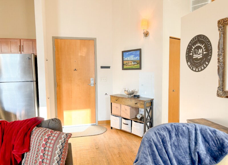 Property Id: 2190067 Experience Milwaukee living at its best in this stylish, all-inclusive studio condo. Located in vibrant Walker's Point, steps from Milwaukee's best dining, coffee, and entertainment, with easy access to Downtown, Third Ward, Harbor District, Bay View, and the Interstate. Thoughtfully furnished and designed for professionals, this unit features high ceilings, exposed brick, modern finishes, and in-unit laundry. Enjoy a comfortable queen bed (memory foam mattress), full kitchen with stainless appliances, high-speed internet, and a reserved parking space (outdoors). Rent includes all utilities - gas, electric, water, and internet - for simple, stress-free living. Downtown: 1 mile Amtrak station: 1.5 miles Aurora St. Luke's Hospital: 2 miles Marquette University: 2 miles Froedtert Hospital: 3 miles MSOE: 3 miles General Mitchell Airport: 5 miles UW - Milwaukee: 6 miles Perfect for traveling professionals, corporate relocations, or anyone seeking a flexible short-term lease. 4-month minimum and 8-month maximum; 1 cat or 1 small dog considered.