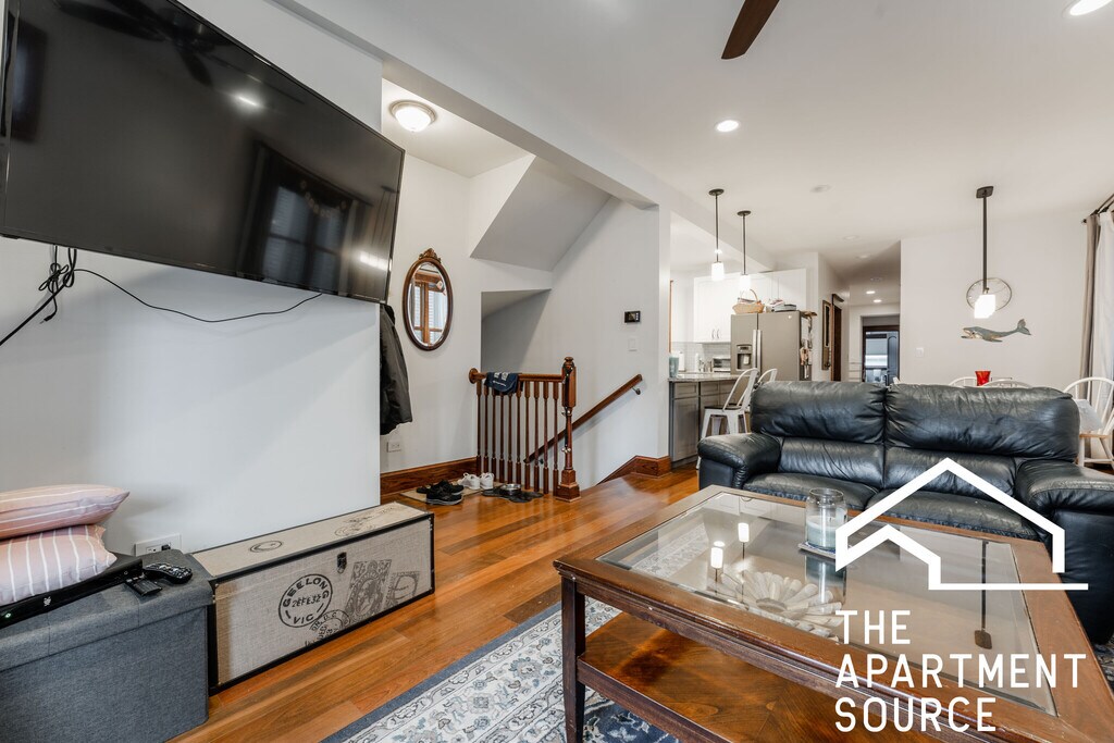 Condo-Quality 4 Bed / 2 Bath Gut Rehab Secure fob-entry building for peace of mind Sleek new kitchen with stainless steel appliances In-unit laundry (no more quarters or trips to the basement!) Bright skylight flooding the space with natural light Two large bedrooms + two full baths with stunning new tile Statement fireplace that separates living/dining from TV lounge space Front, street-facing balcony for morning coffee or evening hangs Recessed lighting on dimmers to set the mood any way you want WiFi + Cable INCLUDED (yes, included!) Disclaimer: The Apartment Source Call or text: