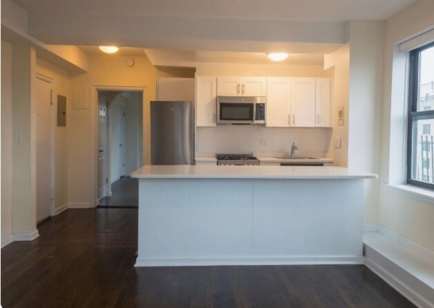 Property Id: 2183189 This well-appointed one-bedroom, one-bathroom residence offers 713 sq ft of comfortable living, perfect for those seeking a convenient and stylish urban lifestyle. You are greeted by a welcoming foyer that flows into a dining area, ideal for entertaining or a quiet meal at home. The pass-through kitchen is thoughtfully designed with traditional elements, featuring white cabinetry and stainless steel appliances, providing both functionality and a modern aesthetic. The spacious bedroom offers ample room for relaxation and rest, while the ceramic-tiled bathroom adds a touch of elegance to your daily routine. Residents of this building enjoy the convenience of a doorman and elevator, ensuring ease of access and a sense of security. Located in a vibrant neighborhood, this property provides easy access to the city's best dining, shopping, and cultural attractions. Whether you're commuting or exploring, the central location offers unparalleled convenience. NO Fee Application 20.00