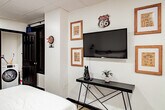 Feel at home in this historic gaslight building, just two blocks from the White House. This unique apartment offers a view of the Washington Monument from its 16th St NW location. Situated on the first floor, this stylish designer efficiency combines charm and history with modern conveniences, providing a spacious alternative to a cramped hotel room. This private and stylish apartment features a well-equipped kitchenette with a stove, refrigerator/freezer, microwave, cookware, dishware, cutlery, and utensils, allowing you to dine in and enjoy a great meal. The apartment is equipped with an HD-Smart TV with streaming services and free high-speed Wi-Fi, ensuring entertainment and connectivity during your stay. Located in Penn Quarter, the apartment is just a short walk from iconic DC landmarks such as the Washington Monument and the White House. Explore the vibrant sights and sounds of Downtown, Gallery-Place Chinatown, and the National Mall. The McPherson Square and Farragut North METRO stations are only a 5-minute walk away, providing easy access to public transportation. Taxis, Uber, Lyft, and various rental options like scooters, bikes, and mopeds are readily available, making it convenient to explore the city. The apartment enforces strict quiet hours from 10 PM to 8 AM to ensure a peaceful environment for all residents. Only toilet paper should be flushed to avoid plumbing issues, and any damage caused by flushing inappropriate items may result in repair costs. Smoking or vaping inside the apartment or building is strictly prohibited, as are parties or events. Only guests listed in the reservation are permitted to stay. [SI]