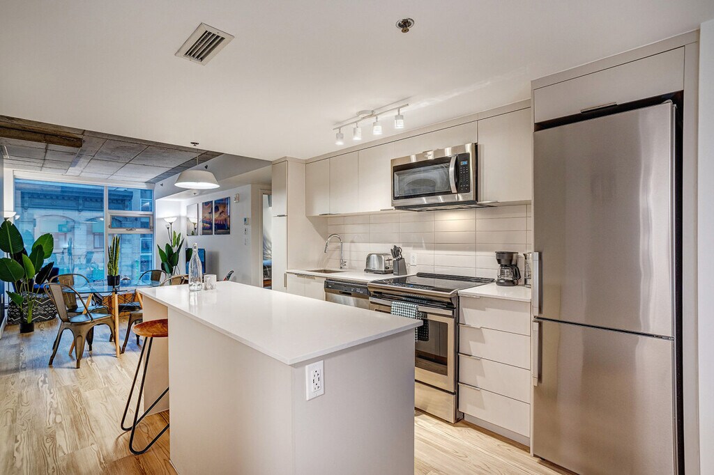 The advertised rate of C$4,065/month is the lowest available price, based on a 1 month(s) stay with a move-in date of June 30, 2026. Rates vary depending on the duration of stay, season, and other parameters. For exact pricing and additional pricing components, please visit our website and enter your desired move-in and move-out dates. The rate is applicable when billed upfront; it can be higher if billed in multiple payments. Feel at home in this flexible monthly 1-bedroom apartment at Humaniti, located in the heart of Montreal’s international district. This apartment, starting at approximately 713 square feet, emphasizes air, water, and light quality while promoting comfort, energy efficiency, and overall well-being. The kitchen is fully equipped with essential appliances, cookware, and utensils. The bedroom is furnished with a comfortable queen bed and storage space. The modern full bathroom features a shower. Enjoy the open-concept living and dining area, in-suite washer and dryer, self-regulated air conditioning and heating, unlimited high-speed wireless internet, and a Smart TV. Deluxe bedding, linens, and towels are included. Parking is available for an additional fee, and pet-friendly options are available with restrictions and additional fees. Steps from the Quartier des Spectacles, Old Montreal, and Place Jean-Paul-Riopelle, this centrally located apartment is near metro stations, art venues, restaurants, and year-round cultural events, perfectly blending convenience and urban sophistication. Photos may not represent the exact suite. A separate workspace is available in most suites. [SI]