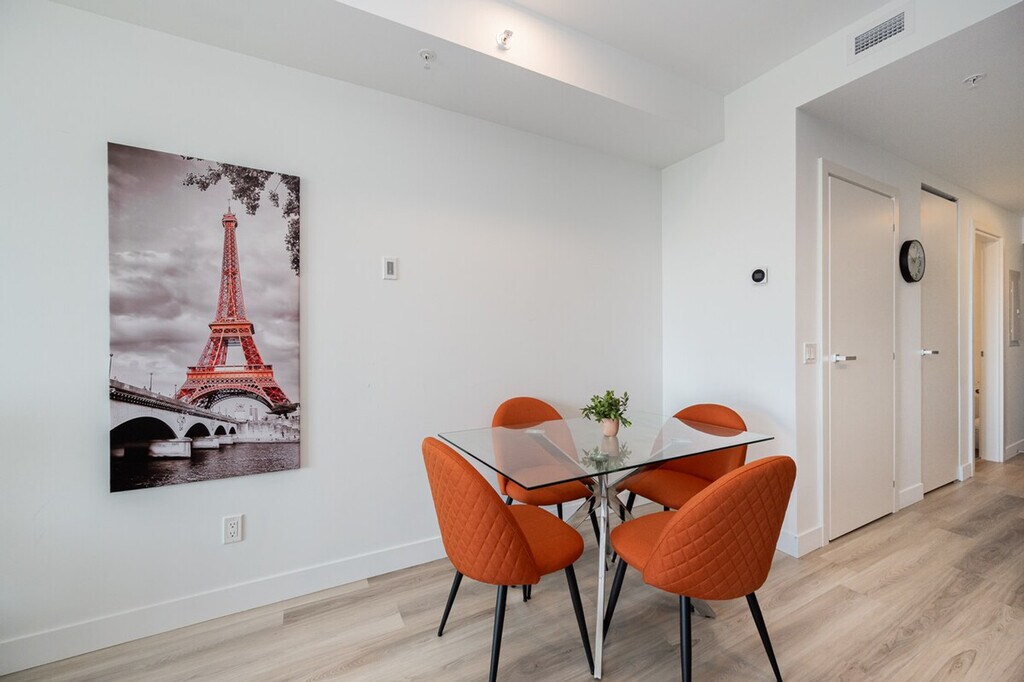 Located in the bustling downtown core of Montreal, adjacent to the Bell Centre, this property epitomizes luxury and practicality, setting a new benchmark for urban living, especially tailored for young professionals, newcomers, and students. Situated mere steps away, residents enjoy easy access to the attractions of the Golden Square Mile and the historic charm of Old Montreal. This development fosters an environment ideal for both academic pursuits and professional development. This new condo is very well located near the Bell Centre, just steps away residents have access to the Golden Square Mile’s attractions. It features 1 bedroom with 1 double bed and 1 bathroom. Indoor parking with in and out privileges is available for an additional fee depending on your length of stay. A variety of cleaning services, including bi-weekly or monthly, are offered for an extra charge. Residents enjoy easy access to the attractions of the Golden Square Mile and the historic charm of Old Montreal, fostering an environment ideal for both academic pursuits and professional development. No parties of any kind or loud noises that can alter the harmony of residents are allowed. No smoking of cannabis, cigarettes, or any kind inside the apartment, balcony, or the building. Care for your home away from home. Shared workspaces, a conference room, and a workspace with a view are available for residents.