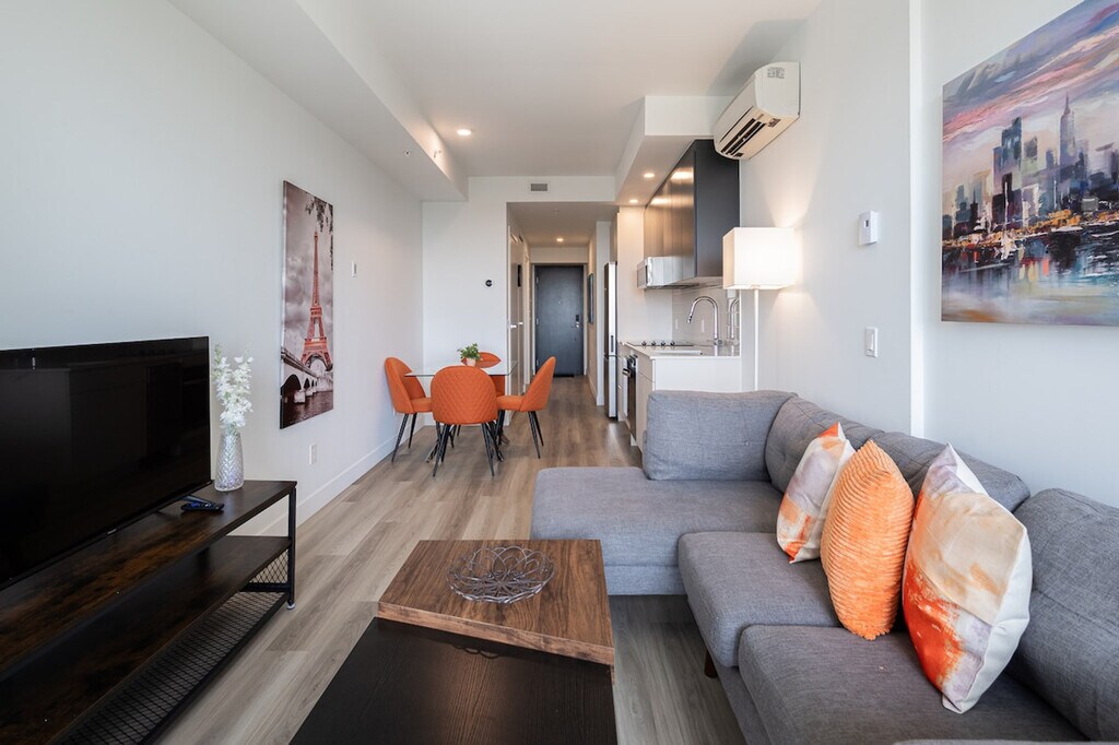 The advertised rate of C$3,848/month is the lowest available price, based on a 30 day(s) stay with a move-in date of July 5, 2026. Rates vary depending on the duration of stay, season, and other parameters. For exact pricing and additional pricing components, please visit our website and enter your desired move-in and move-out dates. The rate is applicable when billed upfront; it can be higher if billed in multiple payments. Located in the bustling downtown core of Montreal, adjacent to the Bell Centre, feel at home in this property that epitomizes luxury and practicality, setting a new benchmark for urban living, especially tailored for young professionals, newcomers, and students. This 1-bedroom apartment has 1 bathroom. This new condo is very well located near the Bell Centre, just steps away from the attractions of the Golden Square Mile. Shared amenities include workspaces, a conference room, a complete gym, a swimming pool, a sauna, a spa, a yoga room, a games room, a cinema, a terrace on the 4th floor, and a workspace with a view. Indoor parking is available with in/out privileges for a separate fee depending on the length of your stay. Cleaning services are available bi-weekly or monthly for an extra charge; contact us for more information. The Lucien-L’Allier neighborhood is centrally located and offers unparalleled convenience. Professionals working in downtown offices will appreciate its proximity to the bustling business district. Lucien-L’Allier Metro Station is a stone’s throw away, connecting residents to various parts of the city. Beyond the metro, bus routes and commuter train services crisscross the neighborhood, making it easy for residents to travel within Montreal and beyond. As the home of the Montreal Canadiens hockey team, the Bell Centre is a hub of excitement. Residents can attend thrilling hockey games, concerts, and other events yearly. Restaurant de l’ITHQ celebrates Quebec’s local produce with refined seasonal cuisine, and Ferreira Café is renowned for its Portuguese cuisine. For a taste of Polish cooking, head to Stash Café. The Montreal Museum of Fine Arts houses an impressive collection of artworks spanning various periods and cultures. The neighborhood provides easy access to theaters, galleries, and cultural events. From high-end boutiques to trendy stores, residents can explore various shopping options. No parties of any kind or loud noises that can alter the harmony of residents are permitted. No smoking (applies to cannabis/cigarettes or any kind) is allowed inside the apartment, balcony, or the building. Situated mere steps away, residents enjoy easy access to the attractions of the Golden Square Mile and the historic charm of Old Montreal. This development fosters an environment ideal for both academic pursuits and professional development. [SI]