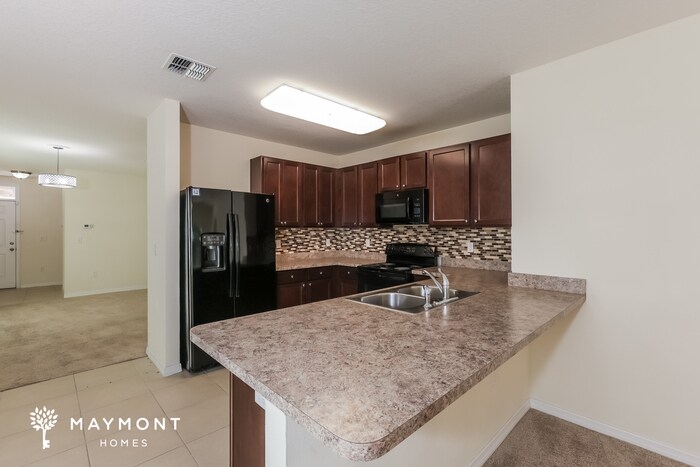MOVE-IN READY This home is move-in ready. Schedule your tour now or start your application today. Set along 10207 Hawk Storm Avenue in Tampa, this 3-bedroom, 2-bathroom home spanning 1,514 square feet introduces a thoughtfully arranged single-story layout designed for everyday ease. A two-car garage and covered entry create a welcoming first impression, while the interior opens into connected living and dining areas that balance openness with definition. The main living spaces feature tile flooring that flows through the kitchen and adjacent areas, transitioning into carpeted rooms that add warmth to the home’s private spaces. The kitchen anchors the layout with dark cabinetry, a mosaic tile backsplash, laminate countertops, and black appliances, offering both function and visual contrast. A peninsula with sink overlooks the living area, keeping everything within reach without crowding the space. Bedrooms are positioned to provide separation and flexibility, with the primary suite offering an attached bathroom complete with dual sinks, a tub/shower combination, and ample vanity space. Additional bedrooms are comfortably sized and share a second full bath, making the layout easy to adapt to different routines or uses. Out back, a covered patio extends the living space outdoors, opening onto a grassy yard that invites relaxation or weekend plans. Located with access to US-301, I-75, and I-4, this home places you within approximately 20 minutes of Downtown Tampa and a short drive to shopping, dining, and daily essentials. With its practical finishes, intuitive layout, and Tampa location, this home offers a well-rounded living experience. Apply Now! *Maymont Homes provides residents with convenient solutions, including simplified utility billing and flexible rent payment options. Contact us for more details. This information is deemed reliable, but not guaranteed. All measurements are approximate. Actual product and home specifications may vary in dimension or detail. Images are for representational purposes only. Some programs and services may not be available in all market areas. Prices and availability are subject to change without notice. Advertised rent prices do not include the required application fee, the partially refundable reservation fee (due upon application approval), or the mandatory monthly utility management fee (in select market areas.) Residents must maintain renters insurance as specified in their lease. If third-party renters insurance is not provided, residents will be automatically enrolled in our Master Insurance Policy for a fee. Select homes may be located in communities that require a monthly fee for community-specific amenities or services. For complete details, please contact a company leasing representative. Equal Housing Opportunity. This property is subject to homeowners' association (HOA) governance; restrictions and covenants may apply. Estimated availability date is subject to change based on construction timelines and move-out confirmation. This property allows self guided viewing without an appointment. Contact for details.