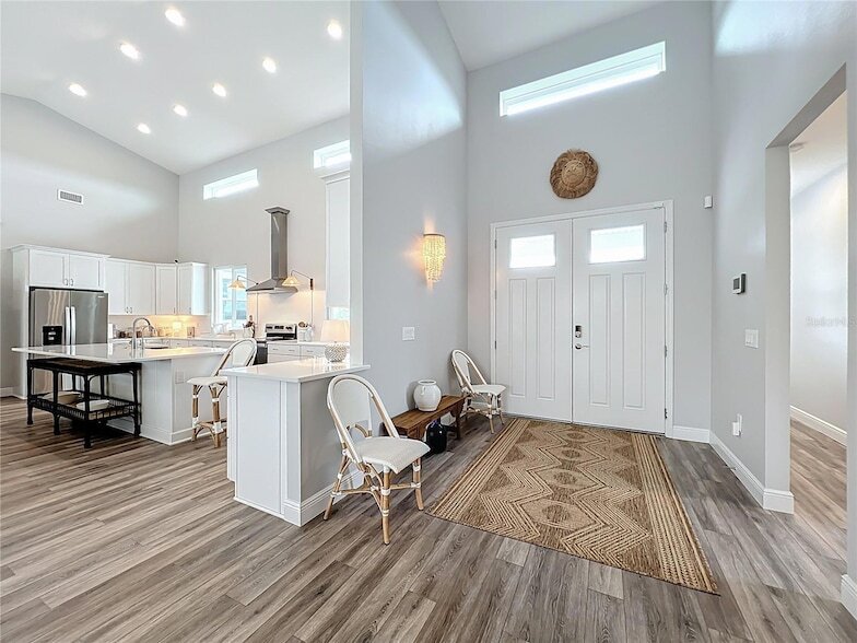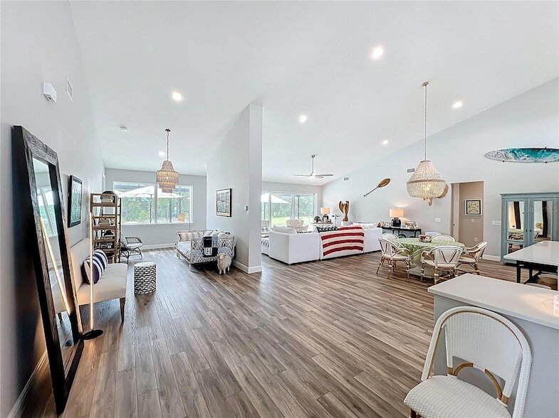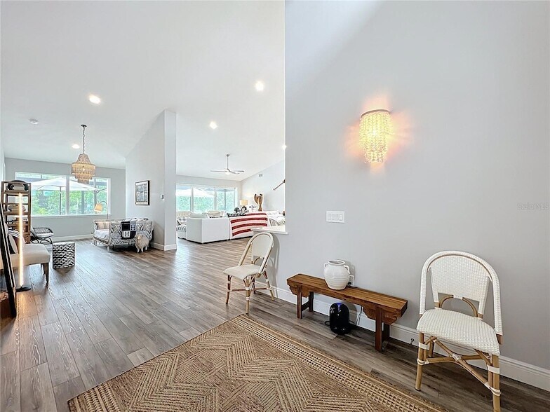 Beautifully designed and fully furnished 4 bedroom and 3.5 bath home in the heart of Groveland is everything you need to experience country living at its finest. The home sits on 30 acres of parklike grounds which offers many recreational activities for you to enjoy such as a putting green, a target range, a fruit orchard, and a common pavilion where you can enjoy an outdoor bbq or sit and watch the beautiful sunset with a refreshing drink. Relax on the outdoor lounge chairs next to the fire pit on cooler evenings and enjoy the surrounding nature as you may spot some cranes or deer walking around. Inside the home, you will find beautiful high end furnishings and four poster beds designed for ultimate comfort. This home also includes a solar powered heated lap pool which is always ready to use. You will also find furnishings on the pool lanai which includes an area for dining and lounge chairs perfect for taking in the tranquil forest stretching through the entire property. Rent includes electricity, water, lawn, and internet. Maid service every two weeks is also included with the rent. Salt treatment tanks for house water. Perfect for an adult couple or a single professional.