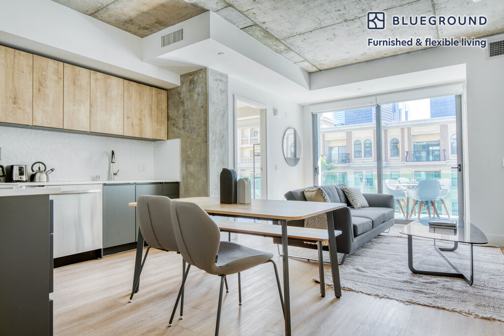 Feel at home wherever you choose to live with Blueground. You’ll love this pretty City West furnished one bedroom apartment with its modern decor, fully equipped kitchen, and spacious living room. Ideally located, you’re close to all the best that Los Angeles has to offer! (ID #LAX556) The advertised rate of $2,150/month is the lowest available price, based on a 1 month(s) and 29 day(s) stay with a move-in date of November 1, 2025. If you’re looking for a 1-year stay, the rate is $3,390/month. Rates vary depending on the duration of stay, season, and other parameters. For exact pricing and additional pricing components, please visit our website and enter your desired move-in and move-out dates. The rate is applicable when billed upfront; it can be higher if billed in multiple payments. Brokers are welcome to reach out. Were you looking for an unfurnished lease? Try Blueground instead and upgrade from unfurnished to furnished living: - Furnished at rates comparable to unfurnished - No setup or furniture costs - save thousands - Move-in ready - save time, just bring your suitcase Designed with you in mind Gorgeous furniture, fully equipped kitchen, smart TV, and a premium wireless speaker are just a few of the amenities you’ll find inside this one bedroom apartment. Ideally located in Los Angeles, you’ll find a lot to love outside as well. When you’re ready to relax, you’ll be happy to discover every Blueground bedroom comes with superior quality mattresses, luxury linens, and cozy towels. We handle everything so you can simply show up and start living. This apartment also offers in-apartment laundry. Sleeping arrangements King Bed, 70.8in/180cm Amenities Building amenities unique to this one bedroom apartment include an on-site: - Doorman - Dryer - Elevator - Game room - Swimming pool - Washing machine - Parking - Pets allowed - Sauna Arrival and ongoing support The entire apartment is yours to enjoy! Throughout your stay, you’ll have access to our Client Experience team through the Blueground App. You can schedule additional cleanings, submit maintenance requests, and view our neighborhood recommendations with just a few taps. We’ll share all details upon confirmation of your stay. Other things to note Building amenities may have an extra cost. This Blueground apartment has flexible lease options, allowing you to book it for one month, a year, or more. Pets are welcome, though weight limits and breed restrictions apply and may incur fees. Parking is offered based on availability and is subject to a fee. We take great pride in ensuring every photo displayed is shot in our own units with our actual furnishings. That said, we regularly refresh our decor and furniture arrangement, which may differ from what’s pictured.