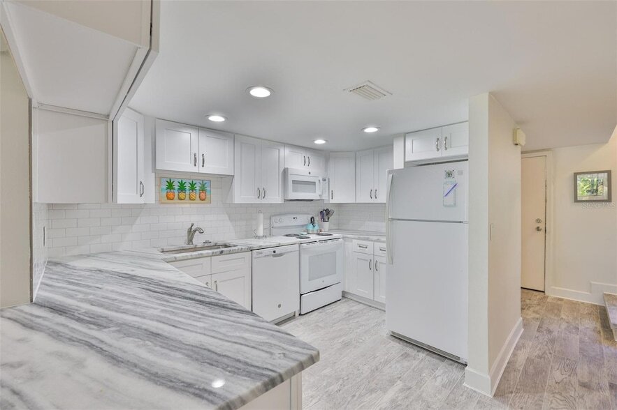 Lovely townhouse style condo unit in Anchor Point. All ages welcome. 2 bedroom, 2 bathrooms, fully furnished and turn key. All you need is your toothbrush! This unit is steps from the pool where friends gather and enjoy the Florida sunshine.