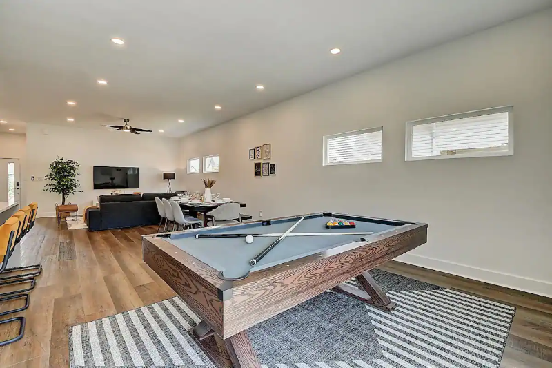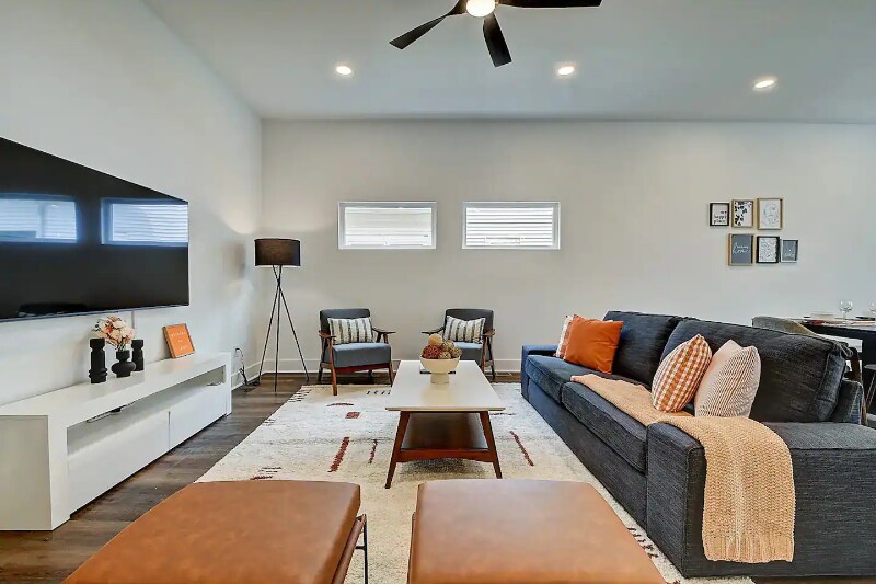 Property Id: 1684390 Fully furnished, move-in ready luxury home in Fountain Square! This 4-bed, 3-bath, 3,000 sq. ft. home blends modern design and comfort. The main-floor master suite features a king bed, en-suite bath with double vanities, glass shower, and walk-in closet. Upstairs are 3 bedrooms: 2 queens and 2 twins. The kitchen has stainless steel appliances, gas range, and island seating. Open-concept living room, pool table, and laundry room with Samsung units. Private fenced yard. Close to art, dining, and downtown!