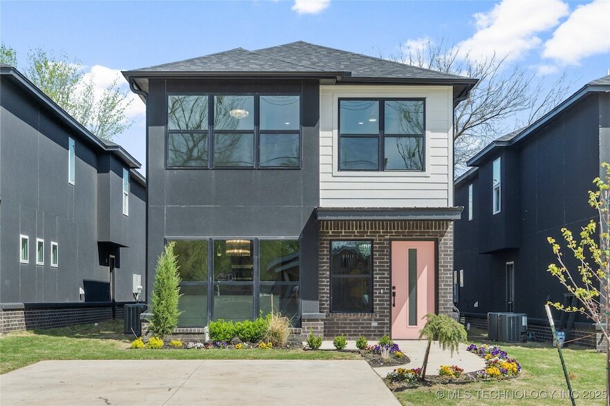 NEW Construction Luxury Duplexes in Owasso Oklahoma. 3 Bed + 2.5 baths charming open floor plan and dripping in style. Stunner in Black Brick, Dark Gray Stucco, White Siding, Black Trim with Coral Door. Killer Kitchen that screams Style and Class with Banquette with drawers, Prep Island, High-end Calcutta Quartz countertops, and gorgeous backsplash, Stainless Appliances, double door fridge/freezer with ice maker. Bright spa-like bathrooms with LED lit and antifog mirrors, tons of storage, tiled showers and bath walls all the way up to the ceiling. Feature wall with linear electric fireplace and built-ins and hidden bookcase. Designer Crystal Lighting Fixtures and Knobs & Pulls throughout. Includes full size washer and dryer. Lawncare provided by the owner. Just across from the Redbud Festival Park & the Tulsa County Library getting a $7 million overhaul!