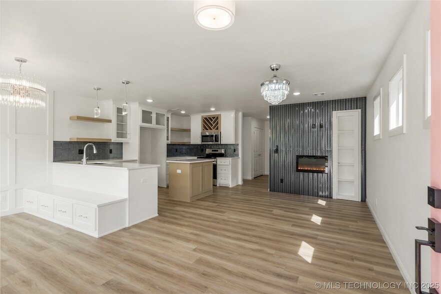 NEW Construction Luxury Duplexes in Owasso Oklahoma. 3 Bed + 2.5 baths charming open floor plan and dripping in style. Stunner in Black Brick, Dark Gray Stucco, White Siding, Black Trim with Coral Door. Killer Kitchen that screams Style and Class with Banquette with drawers, Prep Island, High-end Calcutta Quartz countertops, and gorgeous backsplash, Stainless Appliances, double door fridge/freezer with ice maker. Bright spa-like bathrooms with LED lit and antifog mirrors, tons of storage, tiled showers and bath walls all the way up to the ceiling. Feature wall with linear electric fireplace and built-ins and hidden bookcase. Designer Crystal Lighting Fixtures and Knobs & Pulls throughout. Includes full size washer and dryer. Lawncare provided by owner. Just across from the Redbud Festival Park & the Tulsa County Library getting a $7 million overhaul!
