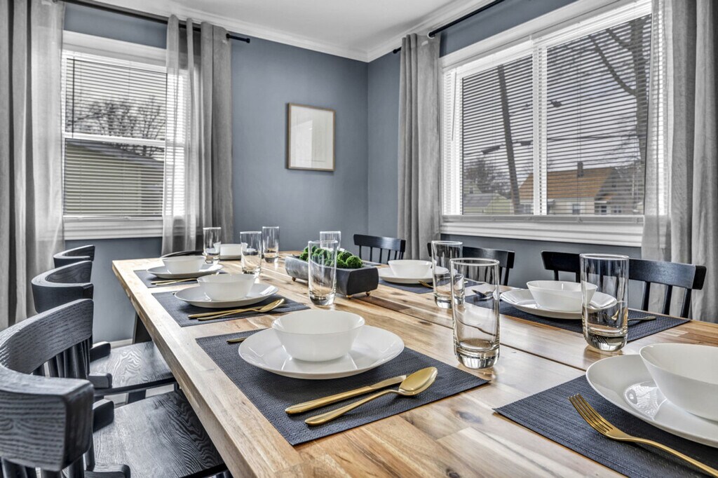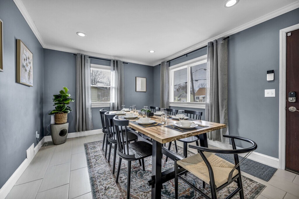 Relaxation awaits at this charming 3-bedroom home in Ashtabula, perfect for larger families and groups, accommodating up to 8 guests. The property boasts a spacious fenced-in backyard with a stunning in-ground saltwater pool, open from mid-May to September, and a relaxing hot tub available year-round. The kitchen is a culinary delight, featuring quartz countertops and ample space for meal preparation. The dining room comfortably seats 8, while the large living room, with its vaulted ceilings and electric fireplace, offers a cozy retreat on cooler nights. The first floor houses 2 bedrooms, each with a queen bed, and a full bathroom. Upstairs, the master bedroom is equipped with a king bed, TV, and a desk for work. The partially finished basement includes a pull-out full couch, 2 arcade games, foosball, and a retro Nintendo 64 with 4 controllers and various games. Pet-friendly accommodations allow a maximum of 2 dogs for a flat fee of $125 per stay, with no cats allowed. Requests for additional dogs are subject to approval and an extra $100 fee. A $75 per day fee applies for pool heating, ensuring a warm swim throughout your stay. This family-friendly neighborhood encourages fun around the pool area, but noise should be minimized between 9 pm and 9 am. Excessive noise between 10 pm and 8 am may incur a $500 fine. Smoking inside incurs a minimum $500 cleaning fee, while smoking outside is permitted. Undisclosed pets result in a $150 fee and possible reservation cancellation without refund. A $150 charge applies for late checkout without prior notice. No parties or large gatherings are allowed, and children under 14 require adult supervision in the pool area. Weapons, underage consumption, and drugs are strictly prohibited on the property. Please remove shoes when entering the house to maintain cleanliness. Guests are responsible for refilling the propane tank for the grill, with reimbursement available upon receipt submission. Bugs may be present due to proximity to the lake, and turning off exterior lights at night may help reduce their presence. The master bedroom includes a desk for those who need to bring work with them during their stay. [SI]