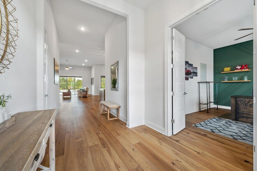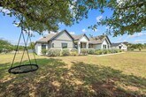 Come spend the holidays in this luxurious retreat! Short term lease available and furnished with furniture and appliances! Pets Welcome! Located at 104 Rolling Hills Ct in a quiet cul-de-sac in the scenic hills of Spicewood, TX, this beautifully designed 1-story home offers 4 BD, 3 BA, dedicated office, media room & nearly 3,300 SF of open-concept living space on a full acre w/a custom pool! Built in 2021, it blends Hill Country charm w/modern sophistication! Inside, vaulted ceilings & a cozy fireplace create a warm, inviting living space. The chef s kitchen is the heart of the home, featuring stone countertops, dark grey shaker-style cabinetry, a custom herringbone backsplash, large island w/seating for four, & high-end stainless steel appliances incl. a double oven. Just off the kitchen, a large pantry & coffee bar w/built-in wine refrigerator add everyday convenience & indulgence. The primary suite offers a tray ceiling, soaking tub, standing tiled shower w/dual showerheads, and spacious double vanity. The west wing features a cinema room w/custom barn door, built-in speakers, and a large screen perfect for movie nights. 3 addt'l bedrooms include one w/en-suite bath, plus a full hall bathroom with double vanity & separate tub. Two sets of full glass sliding doors welcome the outdoors in seamlessly, filling the home with natural light and offering effortless access to the backyard oasis. Step outside to a fully equipped outdoor kitchen, perfect for weekend cookouts, and a custom pool with a waterfall feature and suntan deck. Grounds maintenance, septic service and pool maintenance all maintained by landlord. A spacious 3-car garage w/electric vehicle charging station also adds convenience. Come spend the holidays in this perfect home!