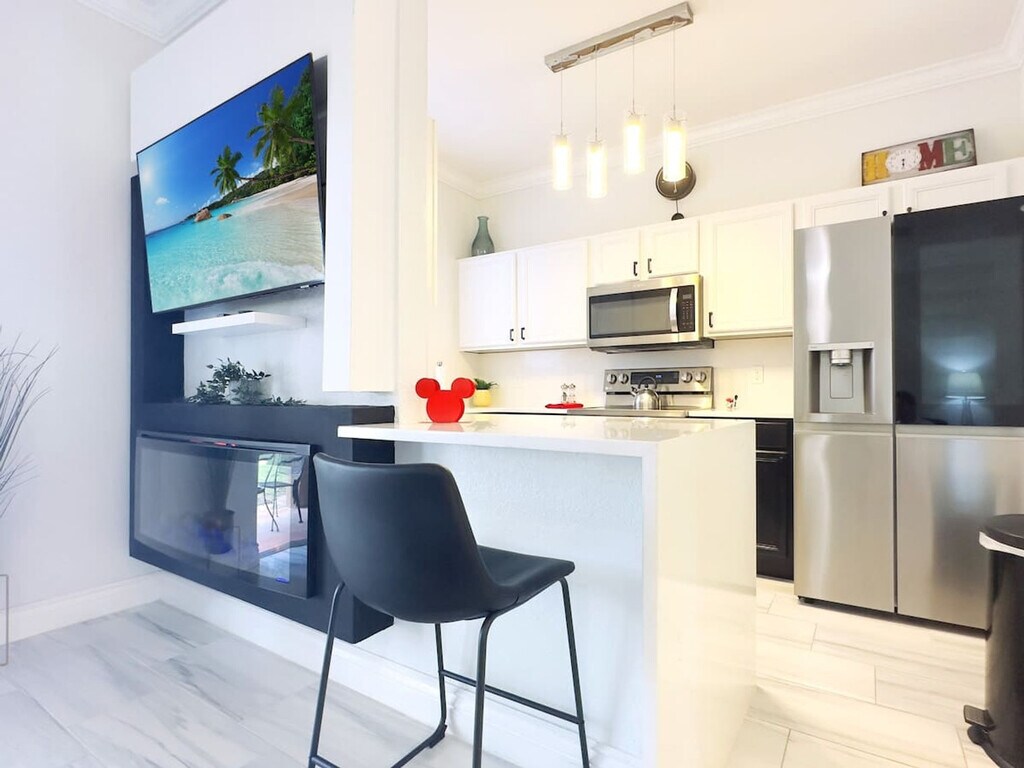 Enjoy your next Florida vacation in this stylish and modern 4-bedroom, 3-bathroom townhome, located in the peaceful and family-friendly Regal Palms Resort in Davenport. This spacious two-story home offers comfort, privacy, and full access to resort-style amenities like a heated community pool, lazy river, spa, restaurant, and even an ice cream shop. Just a 5-minute walk or 1-minute drive from the clubhouse, and only a short ride to Disney, this home is perfect for families and groups of up to 8 guests. This townhome features a spacious two-story layout perfect for families or multi-generational groups. With fresh, modern décor, the home offers a clean and cozy ambiance. The comfortable living area includes a smart TV, and each bedroom is equipped with its own smart TV for personalized entertainment. The fully equipped kitchen boasts stainless steel appliances and all cooking essentials, complemented by an open dining area with seating for the whole group. Enjoy high-speed Wi-Fi, central air conditioning, and the convenience of an in-unit washer and dryer. Parking is convenient, and the location within the resort is quiet, ensuring a peaceful stay. A mandatory resort fee of $20 USD per day, per property is required by Regal Palms Resort. Paid upon check-in, this grants full access to all resort amenities. Welcome to Regal Palms Resort, your family-friendly getaway near Disney. Located in the heart of Davenport, just minutes from the magic of Disney World, Regal Palms Resort is a gated community offering the perfect blend of comfort, convenience, and fun for the whole family. Enjoy resort-style amenities including a tropical swimming pavilion with a lazy river, water slide, and heated pools. Relax at the on-site spa, or grab a bite and a drink at the full-service restaurant and bar. Kids will love the game room and playground, while adults can stay active at the fully equipped fitness center and indoor sauna/steam room. The resort also features 24/7 gated security, free parking, and a convenience store on-site. With close proximity to shopping, dining, and top golf courses, whether you're visiting the theme parks, exploring Central Florida, or just looking to relax by the pool, Regal Palms Resort is the perfect place to call home during your stay. Quiet hours are between 22:00 and 6:00. [SI]