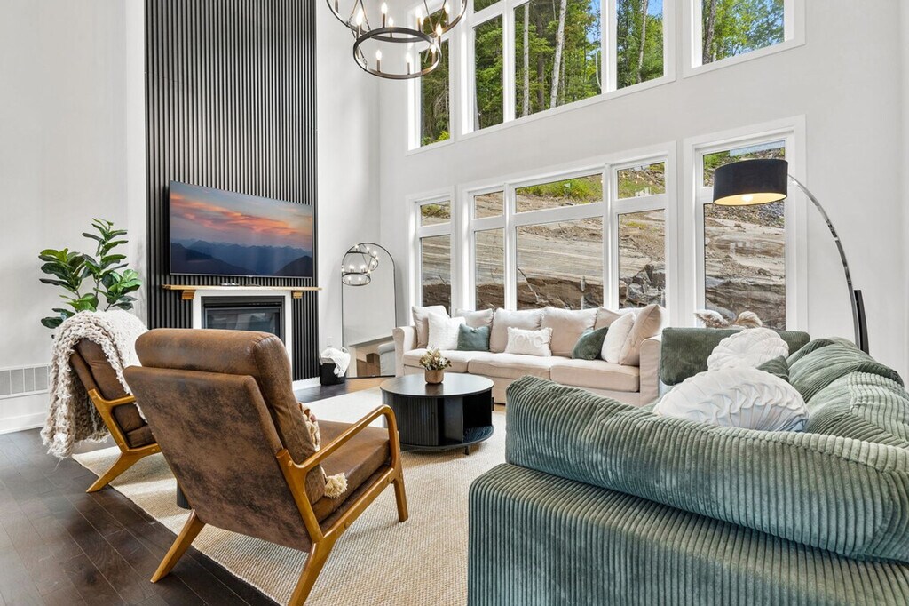Feel at home in this spacious 4-bedroom cottage in Muskoka, offering a perfect blend of nature and luxury. Built in 2024, this cottage features vaulted ceilings and an open-concept design with floor-to-ceiling windows that flood the space with natural light and showcase the serene surroundings. This family-friendly cottage features a hot tub, sauna, a fully screened Muskoka Room with a cozy fire table, a full-size pool table room, ping pong table, foosball and board games for entertainment. The kitchen is equipped with numerous cooking appliances. The master bathroom features a spacious full bathroom with a free-standing tub, standing shower, and a makeup vanity, stocked with all necessities and essential toiletries. There is also a second full bathroom stocked with all necessities and essential toiletries. The boutique, cottage-style decor adds a modern touch, making you feel right at home among the pines. The living room features a 75-inch 4k Ultra HD Smart TV. A dedicated workstation is available. Experience all the comforts of home in Lake of Bays, surrounded by woods, beaches, and trails. Conveniently located, Deerhurst Resort and Dorset are only 10 minutes away, with Huntsville just 15 minutes from your door. Embrace the winter season with skiing, snowboarding, snowshoeing, and snowmobiling, all just 10 minutes from Hidden Valley Ski Slopes & Snowboard Area. Discover a variety of outdoor adventures including biking, hiking, rock climbing, golf, horseback riding and visits to local microbreweries, all within 10 minutes. Explore nearby national parks such as Limberlost Reserve, Arrowhead Park and Algonquin Park, just 15-20 minutes away. For water lovers, enjoy canoeing and motorized water sports with rentals available just 10 minutes away. Seasonal farmers, markets and local events are also within reach, adding charm to your stay! There is a strict no-smoking and no-party policy. Violations of these policies will result in a $1000 fine respectively. Toilet paper, garbage bags and basic toiletries will be provided at the beginning of the stay. It will then be the guest's responsibility to provide these for the remainder of their stay. This property is located in cottage country so mosquitos, flies, and in rare cases, small wild animals (including turkeys, field mice, foxes, deer, etc..) could be seen in the area. Windows and doors should be closed when not in use to prevent pests from entering the cottage. [SI]