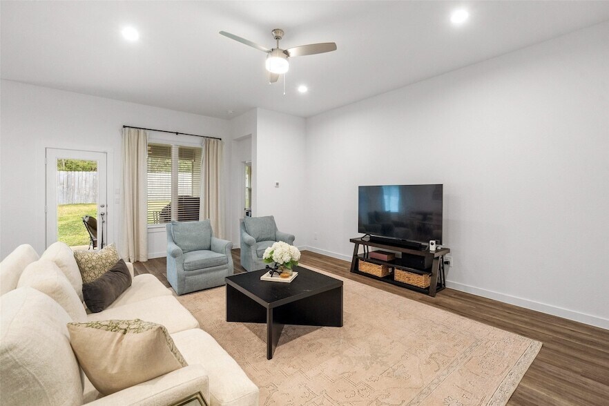 Welcome to 1045 Dancing Feather Street, a charming home in Montgomery offering both comfort and privacy. This well-maintained 4-bedroom, 2-bathroom residence features a spacious open floor plan with abundant natural light. The heart of the home includes a welcoming living area and a modern kitchen with ample cabinet space. Step outside to the covered back porch, the perfect spot for relaxing or entertaining family and friends, with no back neighbors to ensure added tranquility and privacy. The expansive backyard provides plenty of room for outdoor activities. Situated in a peaceful neighborhood, this home offers the ideal blend of convenience and serenity. Whether you re enjoying quiet moments on the porch or hosting gatherings, this property is designed to make every moment special.