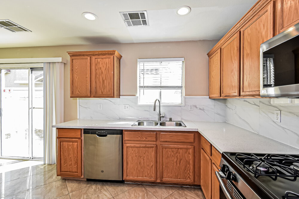 Please note, our homes are available on a first-come, first-serve basis and are not reserved until the lease is signed by all applicants and security deposits are collected. This home features Progress Smart Home - Progress Residential's smart home app, which allows you to control the home securely from any of your devices. Learn more at Want to tour on your own? Click the “Self Tour” button on this home’s listing or call to register for a self-guided showing at a time that works best for you. This Las Vegas rental home situated on Armand Avenue boasts three bedrooms and two-and-a-half bathrooms. It features 1,476 square feet of space and a charming Spanish-style stucco exterior. Arched doorways lend the living room a spacious, airy feel as you enter, and the tiled floors and ceiling fan will help you keep it comfortable no matter the season. Walking into the kitchen, you?ll spot quartz countertops, stainless steel appliances, and wood cabinets. The spacious master bathroom is the perfect place to relax or get ready. It's warm and bright thanks to windows letting in sunlight, not to mention there's a tub/shower combo to get clean or lay back, as well as dual sinks. The master bedroom boasts a walk-in closet for all your storage needs. The fenced-in backyard will be perfect for backyard cookouts or enjoying a book outside on the patio. Take a tour of this renovated rental home today.