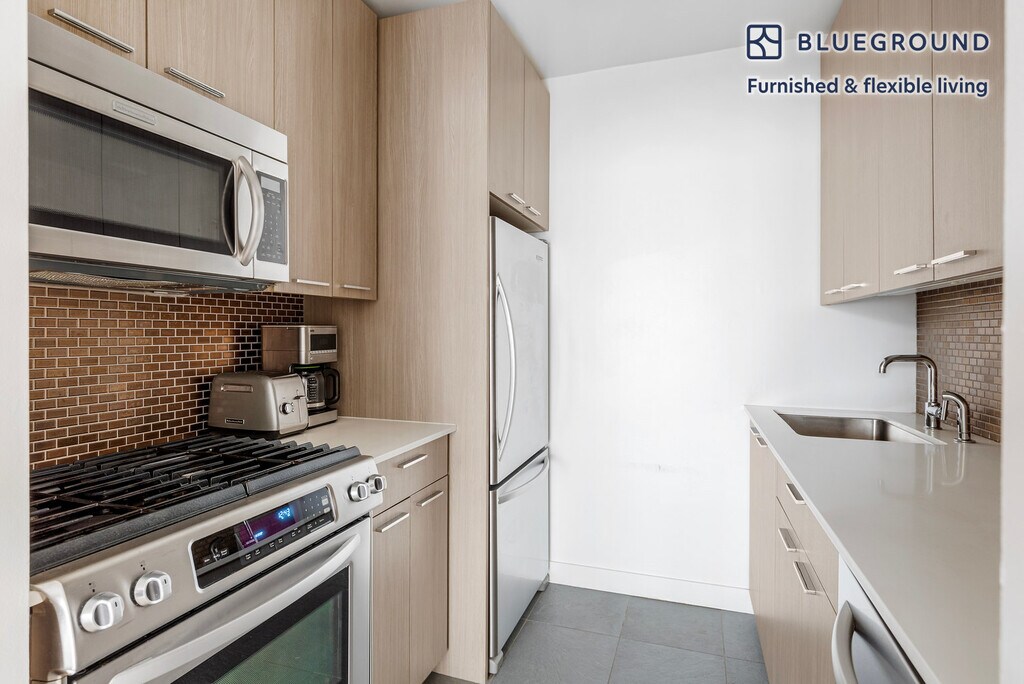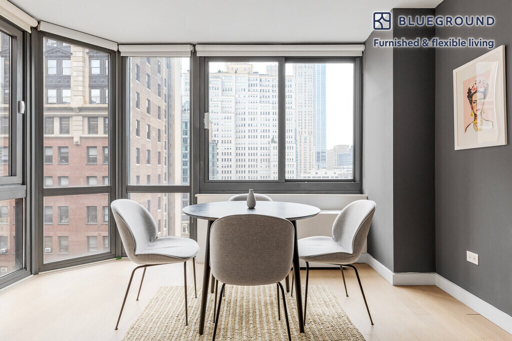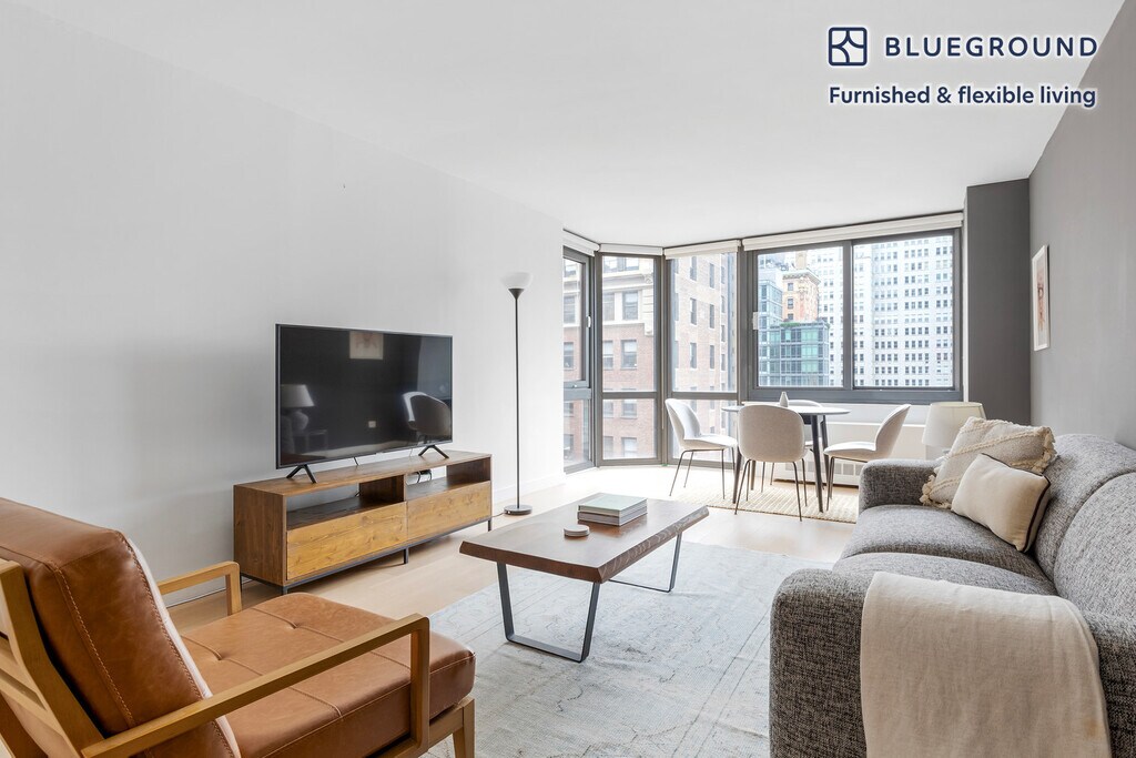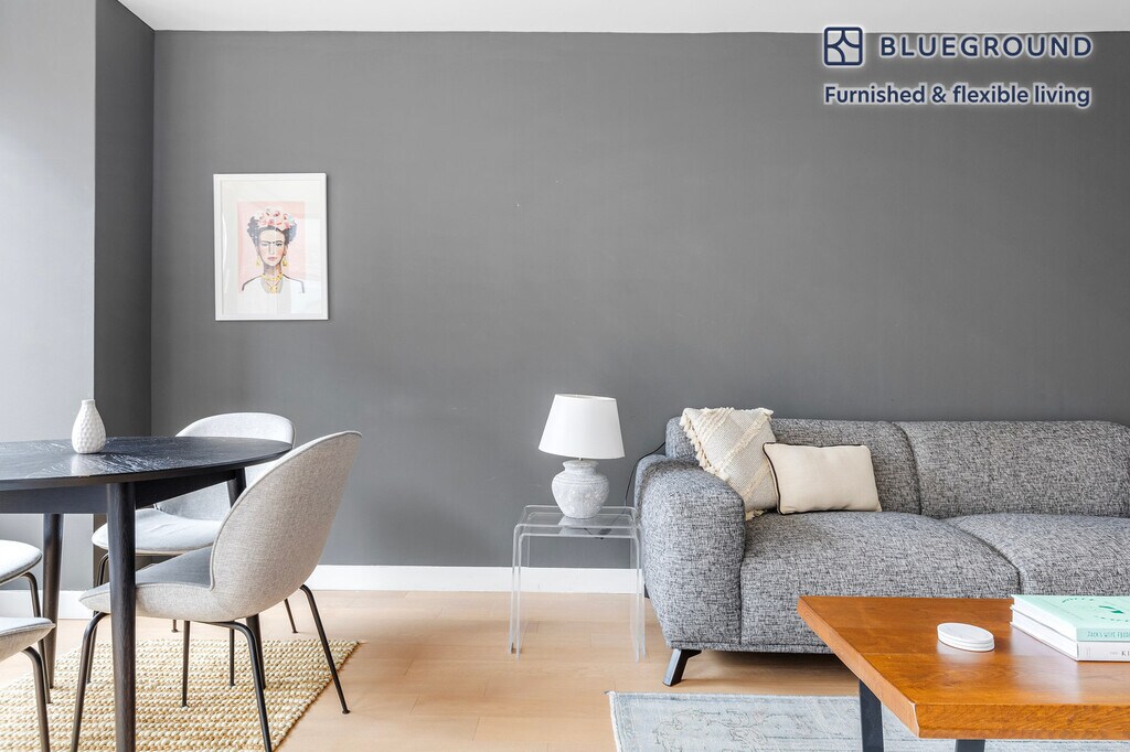 Feel at home wherever you choose to live with Blueground. You’ll love this lovely Tribeca furnished one bedroom apartment with its modern decor, fully equipped kitchen, and pretty living room with great high floor views. Ideally located, you’re close to all the best that New York has to offer! (ID #NYC231) The advertised rate of $9,610/month is the lowest available price, based on a 12 month(s) stay with a move-in date of October 17, 2025. Rates vary depending on the duration of stay, season, and other parameters. For exact pricing and additional pricing components, please visit our website and enter your desired move-in and move-out dates. The rate is applicable when billed upfront; it can be higher if billed in multiple payments. Brokers are welcome to reach out. Were you looking for an unfurnished lease? Try Blueground instead and upgrade from unfurnished to furnished living: - Furnished at rates comparable to unfurnished - No setup or furniture costs - save thousands - Move-in ready - save time, just bring your suitcase Designed with you in mind Thoughtfully designed with bespoke finishes, modern furnishings, and a fully equipped kitchen, you’ll enjoy that “I’m home” feeling with this Blueground apartment. Whether you’re lounging in your lovely living room streaming the latest and greatest entertainment on the smart TV or premium wireless speaker, or getting some well-earned rest on the superior quality mattress with luxury linens, you’ll fall in love with everything this Tribeca apartment has to offer. Sleeping arrangements Double Bed, 55in/140cm Amenities Building amenities unique to this one bedroom apartment include an on-site: - BBQ Area - Doorman - Dryer in building - Elevator - Swimming pool - Washing machine in building - Lounge - Pets allowed Arrival and ongoing support The entire apartment is yours to enjoy! Throughout your stay, you’ll have access to our Client Experience team through the Blueground App. You can schedule additional cleanings, submit maintenance requests, and view our neighborhood recommendations with just a few taps. We’ll share all details upon confirmation of your stay. Ideally Located This furnished apartment is in the vibrant neighborhood of Tribeca. Formerly an industrial center, nowadays it is considered an artists' mecca, and one of the most exclusive neighborhoods in the city. The award-winning public and private schools draw families to nest nearby. Locals can be seen strolling along the Hudson River or dining at a wine bar. Quaint cafes and inviting green park space make this a great place to call home. Tribeca is one of the more well-rounded and well-connected neighborhoods in Lower Manhattan. By subway, the Financial District is only 10 minutes away. Other things to note Building amenities may have an extra cost. This Blueground apartment has flexible lease options, allowing you to book it for one month, a year, or more. Pets are welcome, though weight limits and breed restrictions apply and may incur fees. Brokes CYOF. We take great pride in ensuring every photo displayed is shot in our own units with our actual furnishings. That said, we regularly refresh our decor and furniture arrangement, which may differ from what’s pictured.