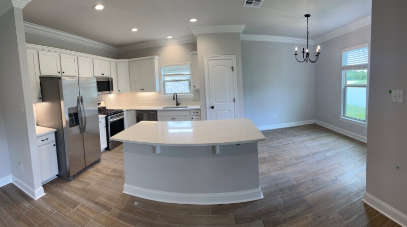 Property Id: 1596327 one year old 4 bd rm 2 ba home on a pond. Home is located in Gabriel pl in Youngsville La. Not far from the sports complex. The house has all ceramic tile so no carpet to cause allergic flairs. The back of the house has a covered patio with lights and fans with a splendid view of a pond. The back yard has an aluminum picket fence so have full view of the large pond with fountain Large master bedroom with attached master bathroom. The other three bedrooms are down a separate hall. Beautiful home with Quartz counter tops in the kitchen and bathrooms. Stainless steel appliances, including refrigerator, Convection stove with air fryer and stove top gas griddle. Dishwasher and microwave. under cabinet lights in the kitchen, Can lighting in kitchen, living and master bedroom. white Quartz counter tops, 2” wood blinds on all widows, Two car garage, Great location 1 mile from youngsville sports complex and shops and restaurants.
