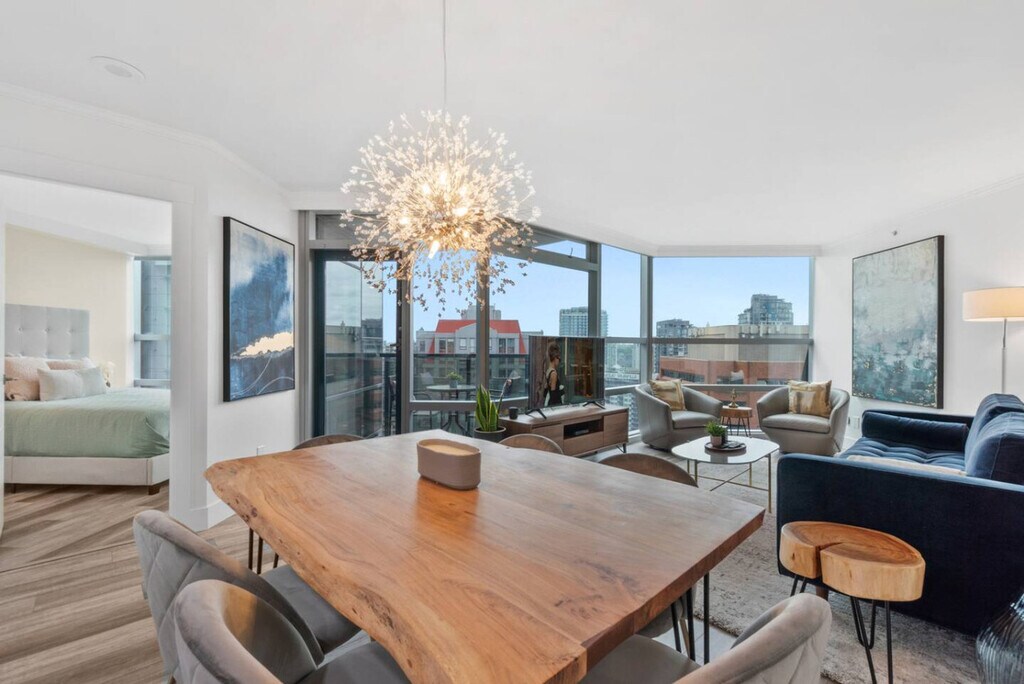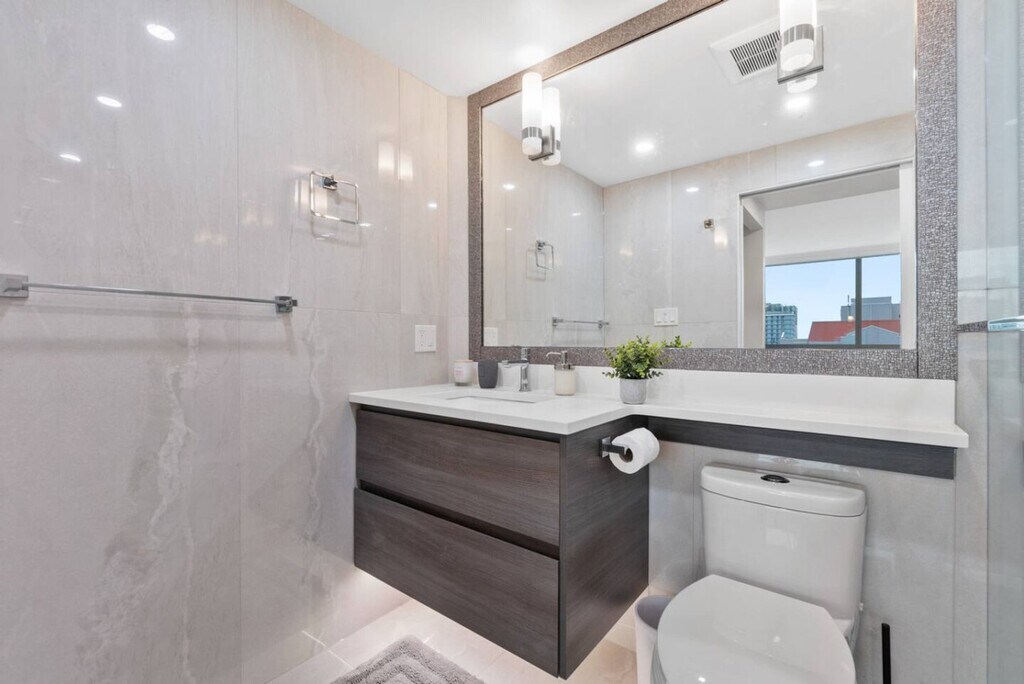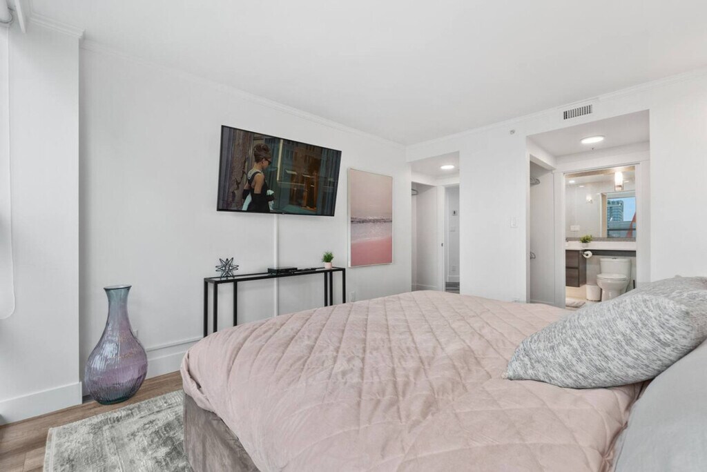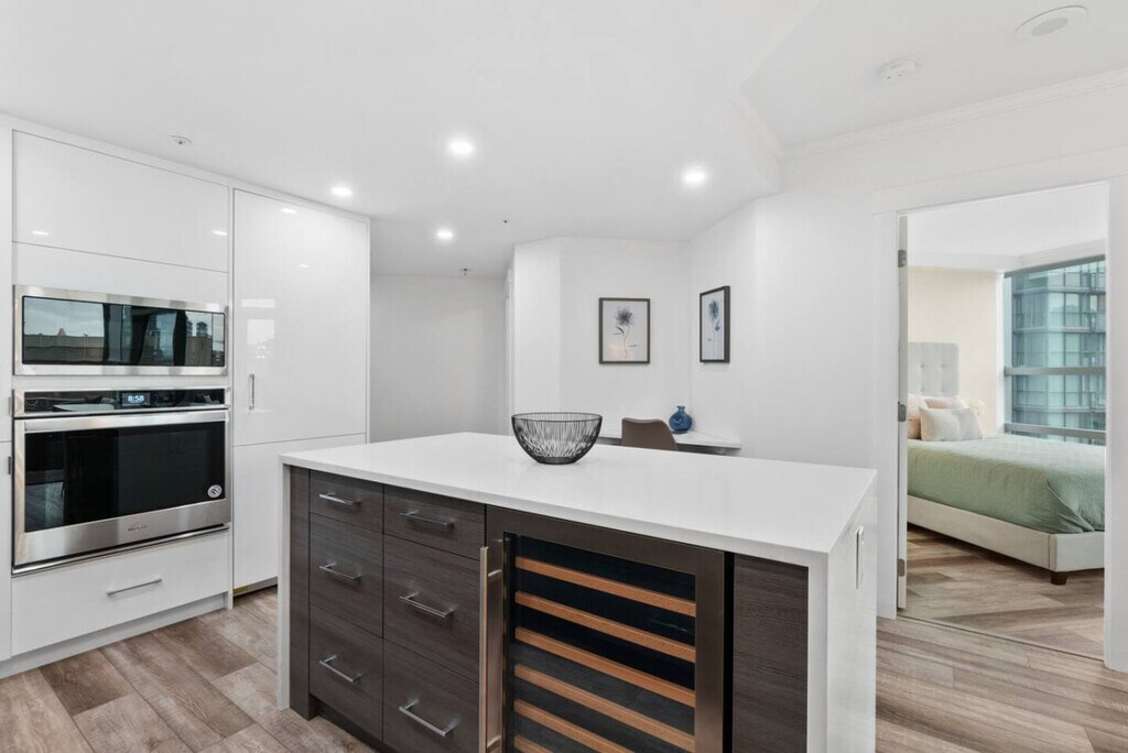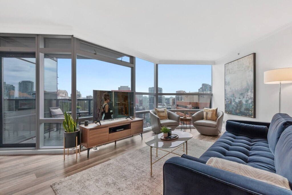 Experience modern city living in this stylish 2-bedroom, 2-bath condo in the heart of downtown Vancouver. Located on Burrard St, this home offers comfort, convenience, and unbeatable access to the city’s best. The condo features a sleek open-concept living area with floor-to-ceiling windows, a fully equipped kitchen, and a private balcony with sweeping views of the city skyline, making you feel at home. No smoking and vaping, no parties and events, and no noise after 10pm. [SI]