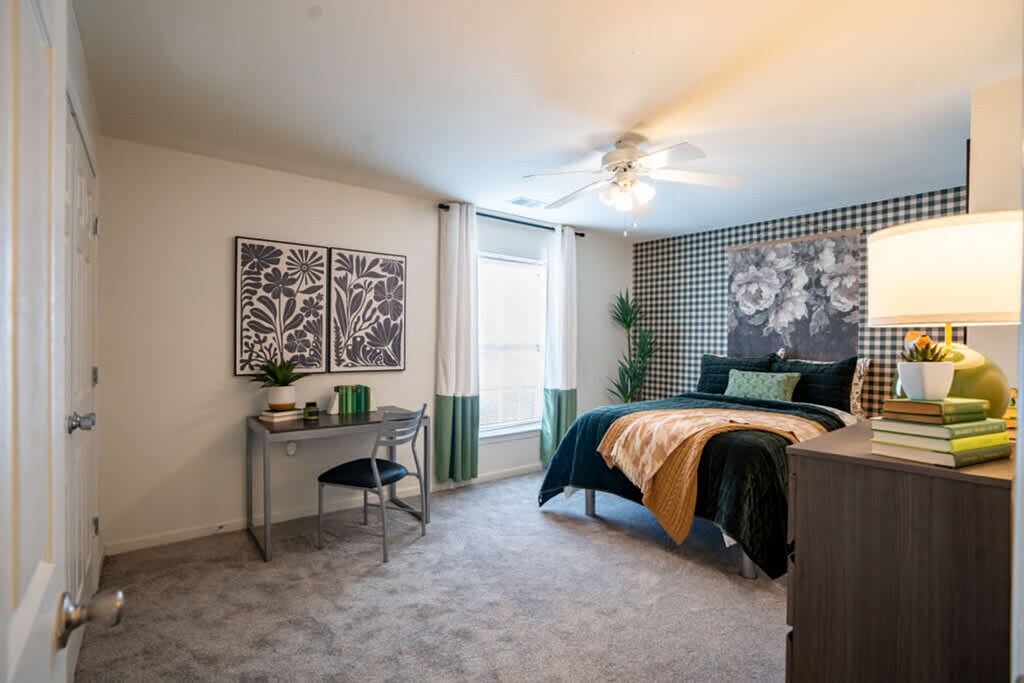 Feel at home in this 4-bedroom, 4-bathroom apartment, perfect for groups, families, or students needing a 30-night minimum stay. This apartment features a large floor plan designed for extended stays. It includes a comfortable living room with a sectional sofa and Smart TV, a full kitchen with appliances, cookware, and dishes, and a dining table for meals or study sessions. Each of the four bedrooms includes a full bed, desk, dresser, and closet, along with a private bathroom with a shower/tub combo. A washer and dryer are included in the unit, and there is a balcony or deck with outdoor seating. Free on-site parking is available, and four parking passes are provided. Guests can enjoy community amenities such as a sparkling pool, a 24-hour fitness center, a 24-hour study lounge with free printing, a full-size basketball court, a full-size volleyball court, an upgraded clubhouse with lounge spaces, outdoor grills, a game lounge, and a shuttle service to USC, Allen University, and Benedict College. Quiet hours are from 10 PM to 8 AM. A warning will be issued for noise complaints; a second complaint may result in removal from the property without refund. The unit includes a Minut smart home device to monitor noise levels, smoking, and occupancy. Construction or city maintenance near the property may occur. Smoking is strictly prohibited inside the unit, in common areas, and on the property. Parties, events, and disruptive behavior are not permitted. Pets are not allowed. Do not move furniture, décor, or appliances. Tampering with Wi-Fi routers, smart devices, security cameras, or locks is strictly prohibited. [SI]