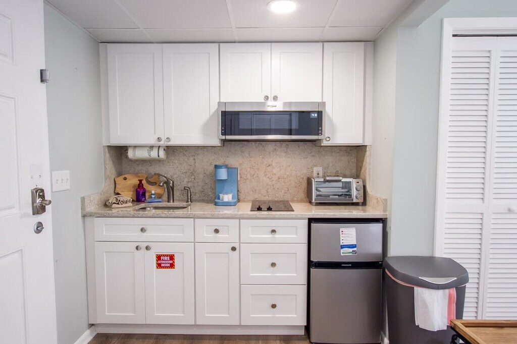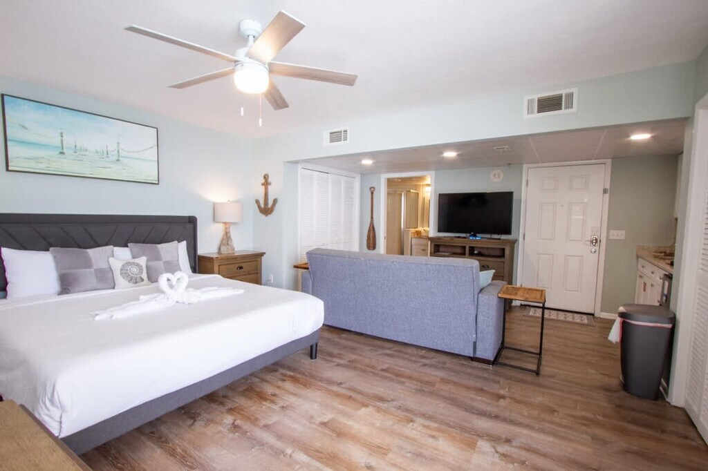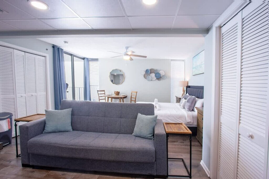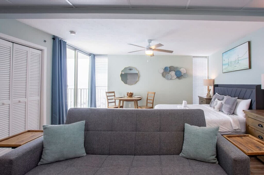 Escape to paradise and feel at home in this beautifully updated studio at Long Beach Resort, located on the 8th floor of Tower IV. Enjoy stunning westward views of the Gulf of Mexico's emerald waters and sugar-white sands from your private Gulf-front balcony. Designed for both comfort and convenience, this studio features a renovated kitchenette with elegant quartz countertops, a sleek undermount sink, soft-close cabinetry, and modern appliances, including a two-burner cooktop, under-counter refrigerator, and portable toaster oven. Everything you need to prepare meals is right at your fingertips. The cozy sitting area seamlessly flows into a stylish bathroom with a modern, standalone shower, quartz vanity, and a bowl sink, creating a spa-like atmosphere for your relaxation. This apartment offers the ultimate beachfront experience. Check-in time is 4:00 PM CT (5:00 PM during Spring Break, holidays, weekends). Registered guests must be at least 25 years of age per the HOA. Quiet hours are between 10:00 PM and 8:00 AM. Per PCB Ordinance 1632, maximum occupancy is three guests, including children and infants. Failure to abide by the ordinance may result in a fine and ejection. The Long Beach Resort building is undergoing a reconstruction project. T1-T2 Pool Closed Aug 18- Oct 31, T2-T3 Pool Closed Oct 20 – Jan 2, T3-T4 Pool Closed 8/28 - 11/28. Walkways will remain open during this phase. Please remain mindful of workers and observe all the signs, tape, or barricades. Monday–Saturday, 7:00 AM – 5:00 PM (Sundays possible for make-up work). [SI]