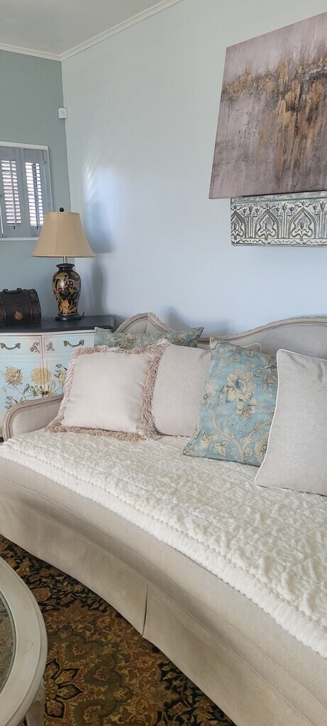 Property Id: 2436099 Quiet, secure, hillside retreat. Fully furnished, all utilities included. Keyless security access to private, upstairs bedroom that includes all the comforts of home, plus a smart TV and cozy sitting area to unwind after a long day. Laptop desk, luggage rack and lamps with charging ports for your electronics makes settling in seamless. Large hallway master bath includes starter toiletries, a walk-in shower/tub with jacuzzi for relaxing. Shared spaces include a living room with fireplace, a separate dining room, large country kitchen, a sunny breakfast room and full laundry facilities. All cooking equipment and utensils are available. A coffee station with Keurig coffee maker makes mornings a little easier. A serene covered porch, secret garden, barbecue area and garden seating are waiting for you to enjoy. mornings a little easier.