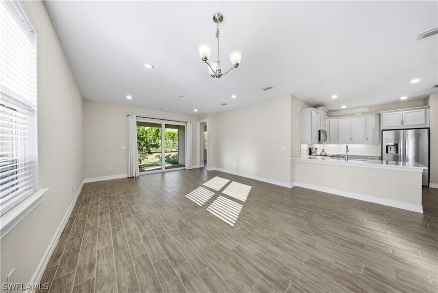 Beautiful and modern 3-bedroom, 2-bathroom home available for annual rental in South Naples. Built just 3 years ago, this bright and spacious residence offers 1,503 sq ft of living space with an open-concept layout, 9-foot ceilings, and high-end modern finishes throughout. The kitchen features stainless steel appliances, ample cabinetry, and a large island that flows seamlessly into the living and dining areas, creating the perfect space for both everyday living and entertaining. The primary suite includes a custom walk-in closet and a well-appointed bathroom, while the additional bedrooms provide flexibility for guests, family, or a home office. This home also offers a 2-car garage, plenty of storage, and smart home-ready capabilities. Located in a well-maintained community with resort-style amenities including a pool and tennis courts. Conveniently situated just minutes from Downtown Naples, Marco Island, beaches, restaurants, major hospitals including NCH and Physicians Regional, and several major hotel chains. This location provides easy access to everything Naples has to offer. Move-in ready and professionally maintained. Available for annual lease.