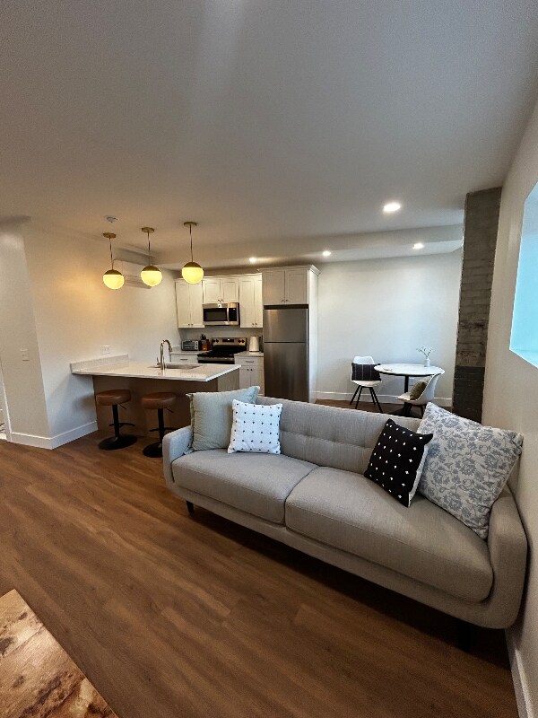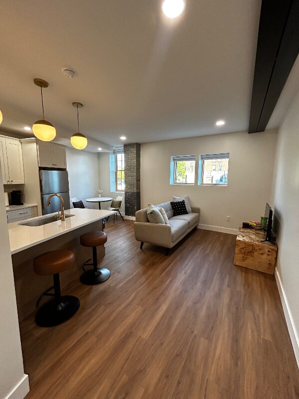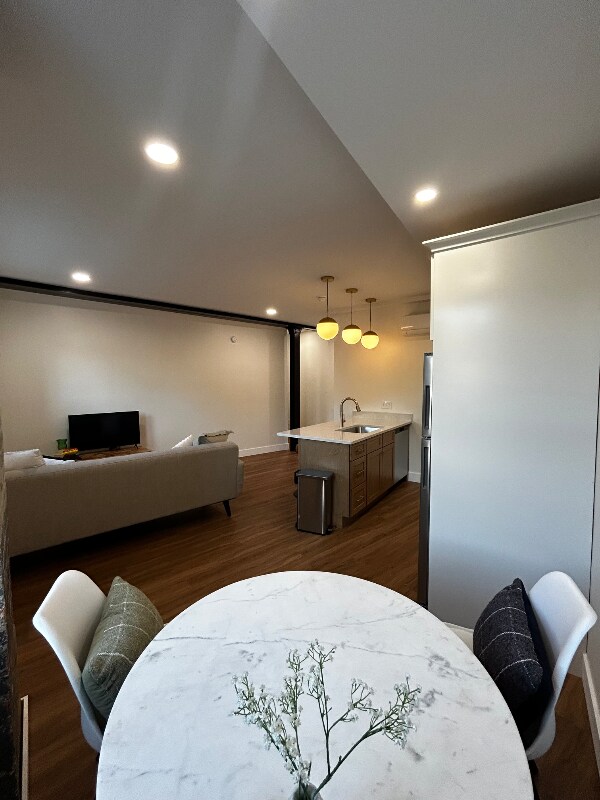 Property Id: 2178395 5 Unit exclusive Newly renovated historical Lux Apartments with high ceilings, large windows in all rooms, natural light and mid century furnished apartment. Zoned cooling and heating. Marble floor bathrooms, custom stainless steel kitchen with tons of cabinets. Breakfast bar for sunlit mornings and evening dinner. Steps away from coffee shops, restaurants, train station, Adirondack Nexxus Center, 10 Minutes to Munson Museum. Free on-site parking and marble floor entryways with keyless access.