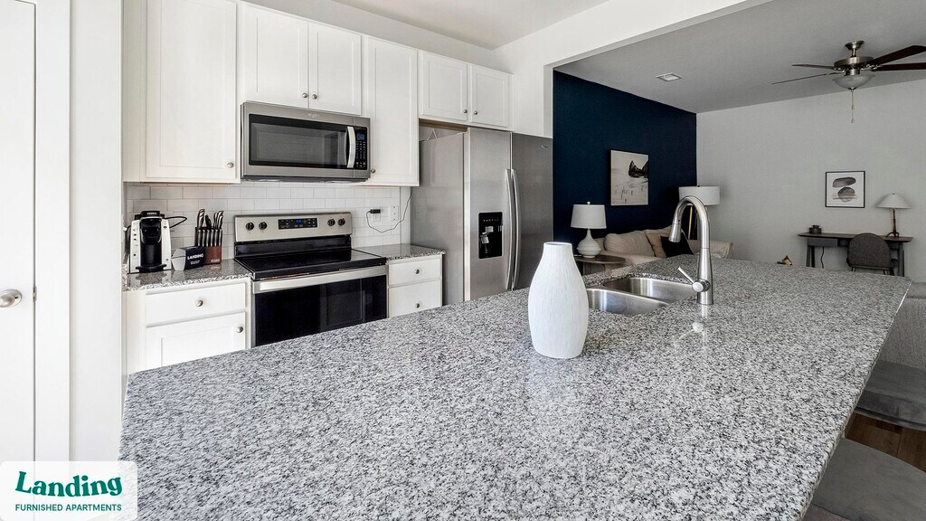 Landing offers flexible lease terms from weeks to months. Please always visit our website or contact us for the latest pricing & availability. Stay longer, save more: 6-Month Minimum base rent: starts at $2950/mo 12-Month Minimum base rent: starts at $2567/mo Landing offers flexible leases across a network of over 35,000 fully-furnished apartments throughout 375+ cities so you can rent on your terms, practically anywhere, and avoid the hassle of paying deposits or application fees. Visit to learn about all the benefits of a Landing membership, see our competitive up-to-date pricing, explore available apartments, take virtual tours, and make reservations online without jumping through traditional rental hoops. Landing's apartments at Chamberlain Pines are designed for comfortable, easy living, with the ability to stay as long as you like. Experience living with Landing Every apartment is outfitted with all the modern essentials including: custom-designed furnishings, a fully-equipped kitchen with deluxe stainless steel appliances, a gourmet coffee maker, premium linens, Smart TVs, and incredibly fast, reliable internet for working from home. When you live with Landing, you'll enjoy a hassle-free experience with the added benefit of 24/7 access to our dedicated member experience team. Some of the nitty-gritty: a background check and proof of income are required; we're completely smoke-free; bundled utility packages and pricing vary based on length of stay; pet-friendly options available; listed price reflects a 12-month minimum stay.