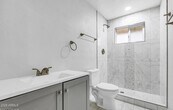 Welcome to this stunning remodeled house in Sun City. This house has been completely redone from top to bottom including all new plumbing, electrical wiring, a new garage and an additional bedroom. As you walk into the home, you are greeted with a large great room that embodies an open concept design. Tile flooring runs throughout the house excluding the bedrooms. The kitchen features a large island with bar seating space, brand new quartz countertops and modern shaker cabinets. The kitchen also comes with all new stainless appliances. The house has a split floorpan with each bedroom possessing new carpet and black modern ceiling fans. Both bathrooms feature beautiful floor to ceiling tiled showers. The backyard has a large covered patio, perfect for enjoying the Arizona weather.