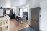 Feel at home in this stylish and spacious duplex in University Circle, Cleveland's cultural hub. Perfect for large groups, this 8-bedroom home offers two updated sides that connect through the front vestibule. This modern, symmetrical duplex is designed for families, friends, and large groups. It features chic interiors with vibrant colors and is stylishly furnished for a welcoming and sophisticated stay. Each side has a fully equipped kitchen for cooking and entertaining, and a comfortable living room for relaxing after a day of exploring. Enjoy the convenience of 2.5 bathrooms on each side. Free parking is available for up to 6 vehicles behind the home. A pet fee of $150 plus taxes and fees per pet, up to a maximum of 2 pets, is applicable. This home is steps from University Circle's museums, restaurants, coffee shops, and cultural attractions, and near Case Western Reserve University, Cleveland Clinic, University Hospital, and Lake Erie. It's also a quick drive to downtown Cleveland's sports venues, nightlife, and theaters. Bring your bikes to explore University Circle, the cultural gardens, botanical gardens, and Severance Hall. This home is centrally located, safe, and full of nearby activities and amenities, making it ideal for medical stays, university visits, or vacation. Enjoy the outdoor amenities, including a barbecue grill and picnic table for outdoor dining. [SI]