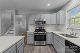 Wonderful end-unit townhouse located in the serene Holly Ridge community! Enjoy manicured sidewalks, mature tree-lined streets, and a well-maintained neighborhood pool perfect for peaceful morning/evening walks, and hot summer days lounging at the pool! Ideally situated, this home offers quick access to I-485 and I-77, is just minutes from Northlake Mall, and close to shopping, dining, and everyday conveniences, making it a prime location at an affordable price. Inside, you ll find a bright and airy layout featuring soaring 16 ceilings in the living room, an inviting gas-log fireplace, and abundant natural light thanks to its end-unit position. The home features LVP flooring throughout with no carpet anywhere, fresh neutral paint, modern countertops in the kitchen and bathrooms, and stainless steel appliances including a gas range. The floor plan provides versatility and convenience with the primary bedroom on the main level featuring an ensuite bath with a dual-sink vanity, while upstairs offers two additional bedrooms, one of which can easily serve as a home office or lofted workspace overlooking the living area. Additional highlights include two dedicated parking spaces directly in front of the home, large walk-in closets for ample storage, laundry on the main level with built-in shelving, and a private wooded back patio that is fully fenced and perfect for relaxing or entertaining. This move-in-ready home blends comfort, privacy, and convenience an exceptional find in such a desirable location. Pets are conditional, and additional pet rent or fees may apply; contact the listing agent for details.