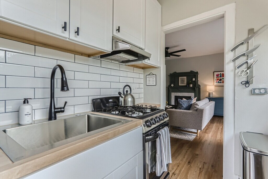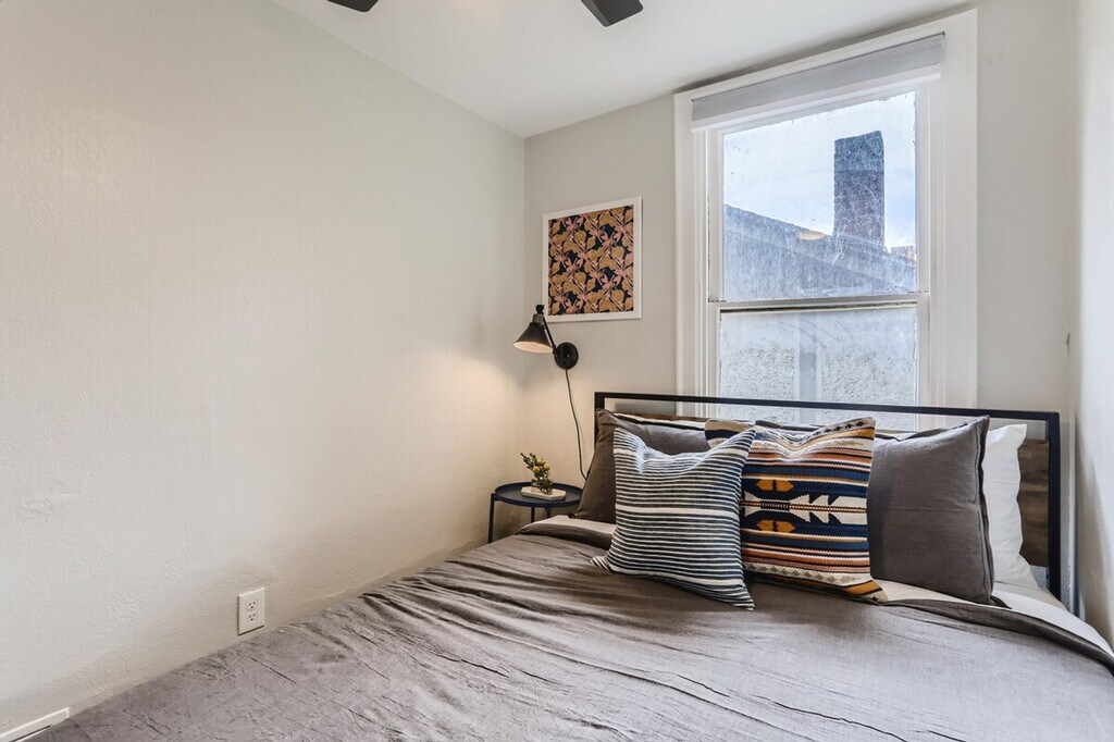 Unit 3 at 1073 Downing St is a charming 380 sqft 1-bedroom apartment located on the second floor at the front of the building. With a spacious den featuring a great banquette and a work-from-home workspace, this apartment offers a cozy retreat. Large windows throughout the space bring in fantastic natural light, and you can enjoy a coffee or glass of wine on your large private deck off the den. Newly renovated and furnished by our designer in Spring 2022, this apartment boasts unique layouts, charming turn-of-the-century architecture, and great natural light. The comfy queen bed and linens ensure a restful sleep, while the stocked kitchen provides all you need for meal preparation. Although there is no dishwasher, the large sink and drying rack make clean-up easy. All utilities, parking, and internet are included, valued at $150+ per month. The apartment offers fast internet with 300mbps download and 10mbps upload speeds. A smart TV is available for you to use your own streaming service, but there is no cable. Free communal laundry is located in the basement. Parking is available with 5 first-come-first-serve spaces in the parking lot at the back of the building, with street parking also available. Situated in a prime location, this apartment is just 3 blocks from Cheesman Park and the Botanic Gardens, and 4 blocks from City Park. You can walk to Ideal Market (Whole Foods), King Soopers, and Trader Joe's, as well as restaurants, coffee shops, retail, and music venues on 6th, 13th, Colfax, and 17th. It's an 8-minute drive to Cherry Creek Shopping District, 10 minutes to downtown Denver, RiNo, and LoHi, 30 minutes to Red Rocks, and 1 hour and 30 minutes to ski resorts. Nearby hospitals include St Joseph (1 mile), Presbyterian St Luke’s (1.5 miles), National Jewish (2 miles), Rose (3 miles), and Children's Hospital Colorado Anschutz (8 miles). The host controls central heat from a single thermostat for the building, while guests can control window AC units and ceiling and tower fans. The property is dog-friendly with a pet rent of $90 per dog per month, but there is a strict no cats policy. Noise disturbances are taken seriously, with a warning given for any reported issues and potential eviction for repeated disturbances without refund. Check-out time is 10 AM, and failure to check out on time will incur a $50 fee for every additional 30 minutes. All properties are non-smoking and non-vaping, with violation resulting in damage fees. Guests are responsible for removing all personal property at check-out, with a minimum $50 fee for returning items left behind. The apartment includes a spacious den with a work-from-home workspace, providing an ideal environment for remote work. [SI]