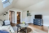 The advertised rate of $2,810/month is the lowest available price, based on a 1 month(s) stay with a move-in date of April 23, 2026. Rates vary depending on the duration of stay, season, and other parameters. For exact pricing and additional pricing components, please visit our website and enter your desired move-in and move-out dates. The rate is applicable when billed upfront; it can be higher if billed in multiple payments. Feel at home in this large, 690 sqft 1-bedroom apartment, Unit #5 at 1073 Downing St, spanning the entire top floor of the building. Newly renovated and furnished, this apartment features a spacious kitchen and den with large windows and skylights that bring in fantastic natural light. It includes a comfy queen bed and linens, and a stocked kitchen. The apartment also has a smart TV, so you can use your own streaming service. Parking is available in 5 first-come-first-serve spaces in the parking lot in the backyard off the alley, with only 1 car per apartment allowed in the lot. Street parking is free and available on the block. Pet rent is $90 per dog per month. Located 3 blocks from Cheesman Park and Botanic Gardens and 4 blocks from City Park, this apartment is within walking distance of Ideal Market (Whole Foods), King Soopers, Trader Joes, restaurants, coffee shops, retail stores, and music venues on 6th, 13th, Colfax, and 17th. It's an 8-minute drive to Cherry Creek Shopping District, 10 minutes to downtown Denver, RiNo, and LoHi, 30 minutes to Red Rocks, and 1 hour 30 minutes to ski resorts. Nearby hospitals include St Joseph (1mi), Presbyterian St Luke’s (1.5mi), National Jewish (2mi), Rose (3mi), and Children's Hospital Colorado Anschutz (8mi). Shared, free laundry is in the basement, accessed from the side door near the fire escape. The host controls central heat from a single thermostat for the building. Guests control window AC units and ceiling and tower fans. This is a dog-friendly property, but cats are not allowed. Failure to check out on time will incur a $50 fee for every additional 30 minutes. All properties are non-smoking/non-vaping, and violation of this policy will result in damage fees. A warning will be given for any reported noise disturbances, and additional disturbances will result in eviction from the property without a refund. Includes two workspaces great for WFH couples. Fast internet with 300mgps download and 10mgps upload is available. A shared router may or may not be in-unit. [SI]