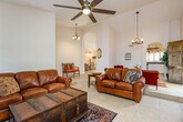 Casa Willow is nestled in a mature neighborhood of North Scottsdale, offering convenient access to the cultural and natural attractions of the Valley, and is just minutes away from the Mayo Clinic. This charming residence features a spacious lot with ample play area in the backyard, perfect for relaxation and entertainment. The home welcomes you with a comfortable main living area, complete with leather seating, a 67” TV, and a Blue Ray/DVD player for a theater-style movie night. The authentic rustic French doors lead to an outdoor pool table, seamlessly connecting indoor and outdoor spaces. The spacious kitchen, adorned with granite countertops, opens to a large eat-in dining area. The property offers four bedrooms and two baths, comfortably accommodating up to eight guests. The master suite, featuring a king-sized bed and a 55" TV, opens to the backyard and includes an en-suite bathroom with granite countertops and an oversized walk-in shower. The second bedroom contains a queen bed and a small office desk with internet access. The third bedroom also features a queen-sized bed and a walk-in closet, while the fourth bedroom has two twin beds. Each bedroom is adorned with hardwood floors, and the shared bathroom boasts granite countertops and a travertine shower/tub. Guests can enjoy the private pool and a separate 8-person above-ground hot tub. The built-in BBQ grill area is perfect for cooking, and there are ample lounge areas to accommodate the entire party. Located in North Scottsdale, Casa Willow is ideally situated to explore the vibrant culture and stunning natural beauty of the Valley. The neighborhood offers easy access to various attractions and is just a short drive from the Mayo Clinic. The pool is not heated, but guests can enjoy the outdoor heated spa at their leisure. Pets are not allowed on the property. Guests are liable for any damages caused to the property. [SI]