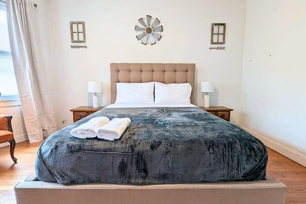 Welcome to your ultimate NYC-area retreat, a bright 3-bedroom, 2-bathroom home in Newark’s safe and walkable Ironbound District. Just 5-7 minutes from Newark Airport (EWR) and approximately 20-40 minutes to Manhattan, this apartment offers a convenient home base for families, friends, or work groups seeking space, comfort, and an unbeatable location. Enjoy the ease of a 7-minute drive to Newark Airport and a 20-minute drive to New York City. The apartment features private driveway parking and free street options, fast Wi-Fi, and a dedicated desk set-up for remote work. This apartment stands out with its fully equipped kitchen, including an oven, stove, microwave, fridge/freezer, coffee maker, and all necessary utensils and cookware. The living room offers a sofa and seating for group hangouts or movie nights, complemented by a smart 55” 4K TV with streaming services. The dining area provides a table for shared meals. Each of the three comfortable bedrooms features a queen-sized bed, blackout curtains, new pillows and linens, and large windows for natural light. The master bedroom includes a dedicated work desk, iron, and ironing board. Two bathrooms come with fresh towels, strong shower pressure, and essential toiletries. The apartment includes one free secure parking spot, with additional free street parking options available. However, only one authorized vehicle is allowed, and extra vehicles will be towed or fined $250. Unauthorized late checkouts incur a fee of $25 per 30 minutes. No unauthorized guests are allowed, with a $50 per night fee for violations. A $50 security risk fee applies if the front door is left open. No parties, events, or large gatherings are permitted, with a $500 fine for violations. Smoking or vaping indoors is prohibited, with a $500 fine for violations. The apartment is an allergy-sensitive space, so no pets are allowed. Nestled in Newark’s vibrant Ironbound District, this neighborhood is known for its Portuguese and Brazilian heritage, offering a rich cultural and culinary experience with authentic bakeries, churrascarias, cafés, and nightlife all within walking distance. Explore nearby attractions like Branch Brook Park, the Prudential Center, and NJPAC. The area is safe, family-friendly, and full of energy, providing a unique blend of local charm and city convenience. With easy access to Newark Airport and NYC, travelers can enjoy both local and city experiences. Quiet hours are enforced between 10 PM and 8 AM, with a $50 fine after the third warning. Vehicles must not block the shared driveway, as they will be towed or fined $250 without notice. Checkout is by 10:00 AM, and unauthorized late checkouts incur a fee of $25 per 30 minutes. The front door must remain closed and locked at all times, with a $50 security risk fee if left open. No loitering outside the home is allowed, and all trash must be bagged and placed in outdoor bins. Shoes off indoors is recommended, and one towel per guest is provided, with fresh towels available after six days upon request. Extra mess will result in an extra cleaning fee, and missing or damaged items will be charged accordingly. The apartment is equipped with fast Wi-Fi and a dedicated desk set-up for remote work, making it ideal for those who need to stay connected and productive during their stay. A laptop computer is not included. Registration Number: NWK108125